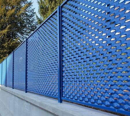 Решетчатый забор состоит из металлических столбов, между которыми закрепляются сетки или сварные панели. Расстояние между пазами определяет шаг сетки, который может быть разным. Чаще всего используются сетки с шагом 5×5 см или 10×12 см.