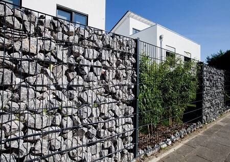 Габионные заборы — это популярное решение для ограждения различных участков. Они состоят из металлической корзины, заполненной камнями или гравием.