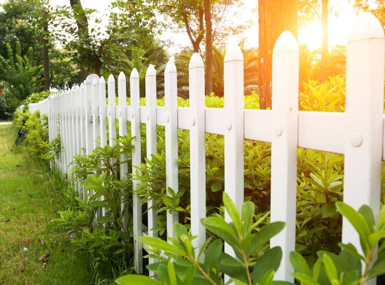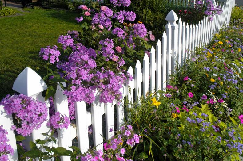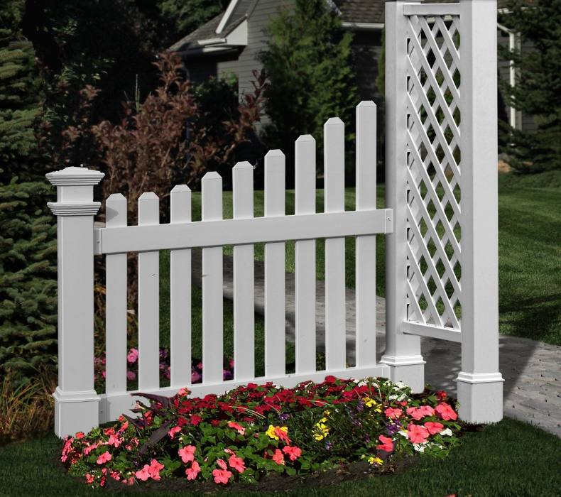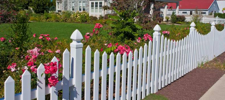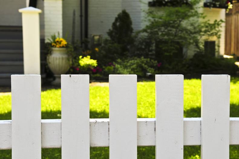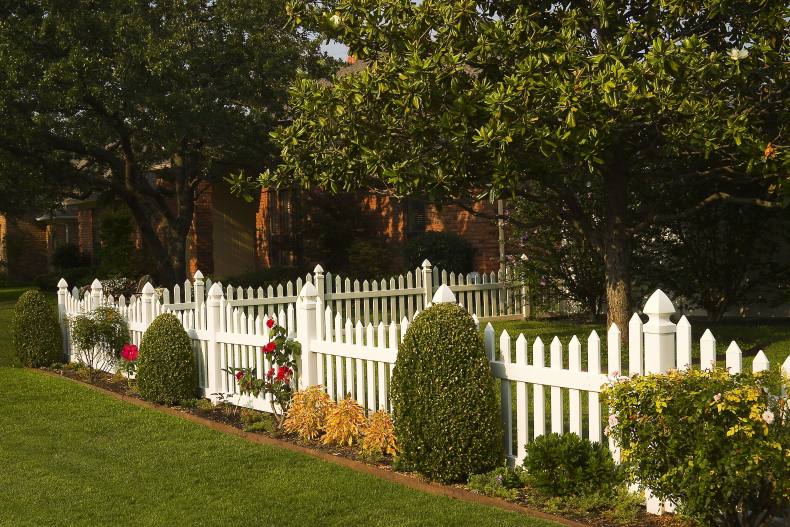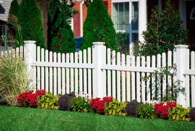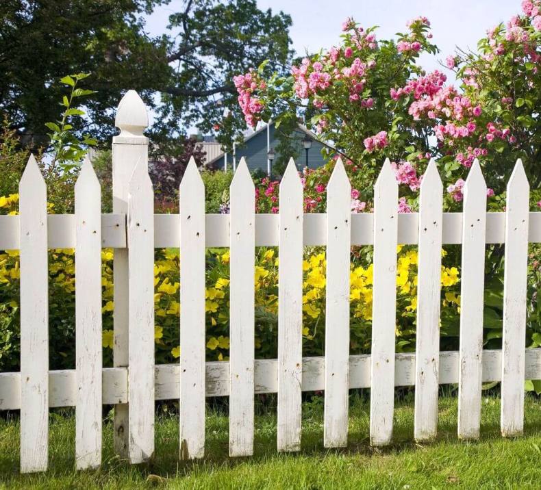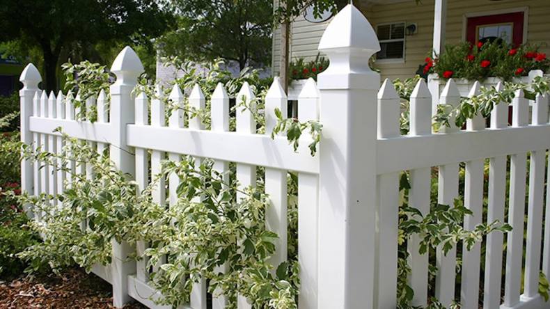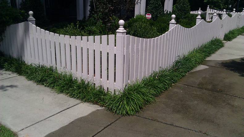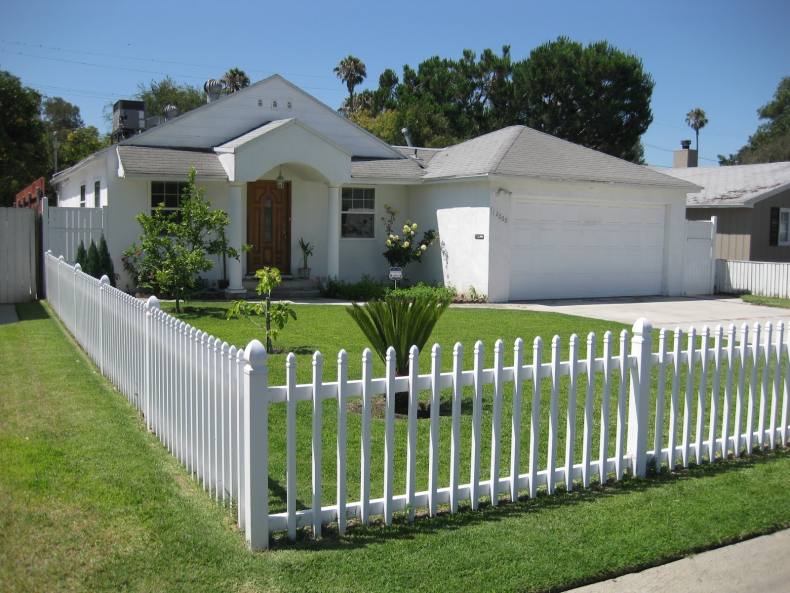 Сочно-зеленая лужайка, низкий белый штакетник – идиллический облик спального района одноэтажной Америки. Если по ограждению пустить плющ или ампельные розочки, то получится аристократический квартал в Англии или палисадник в колониальном стиле где-нибудь в Индии.