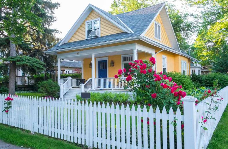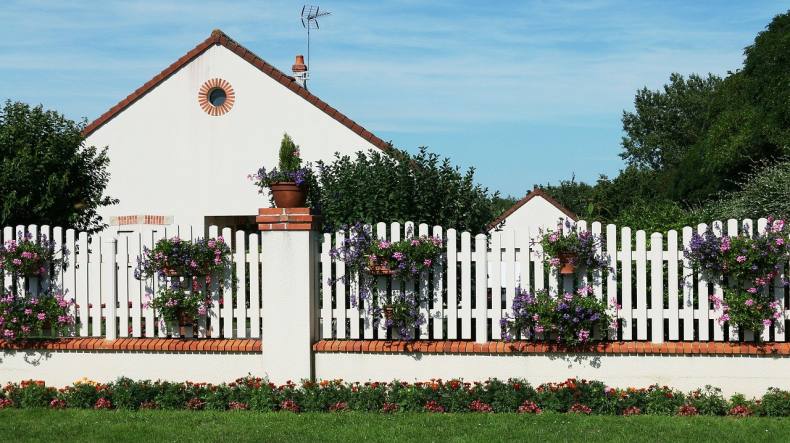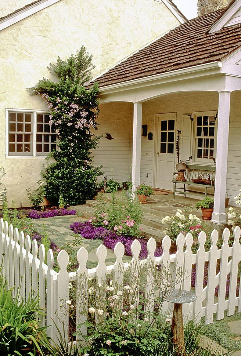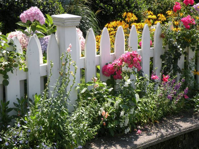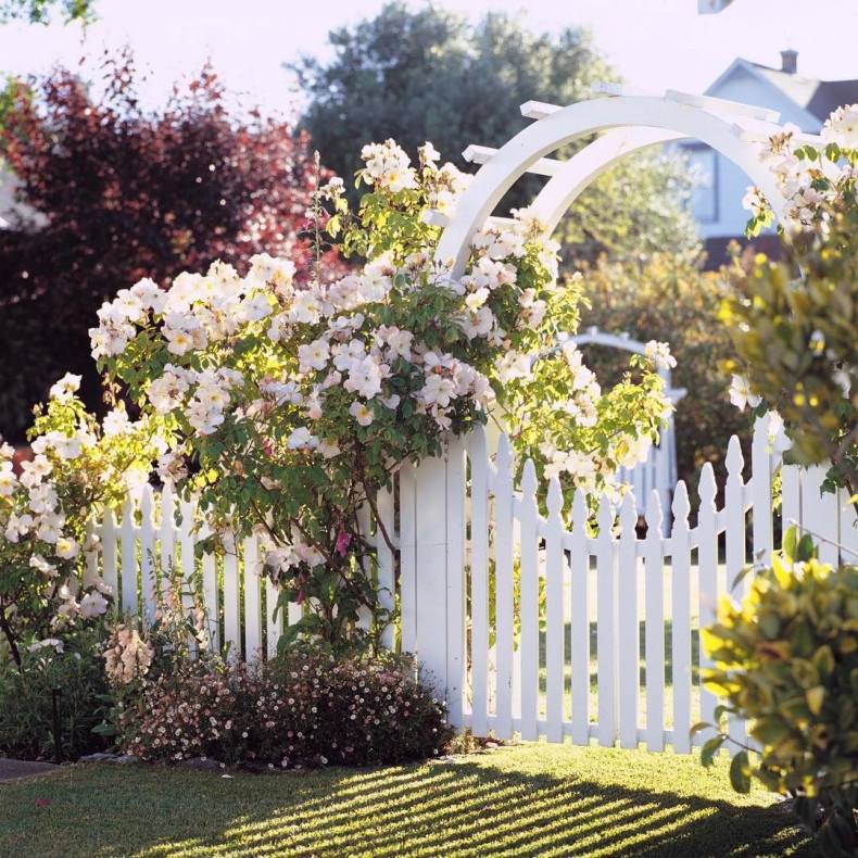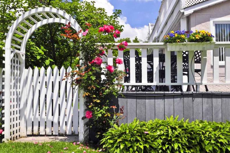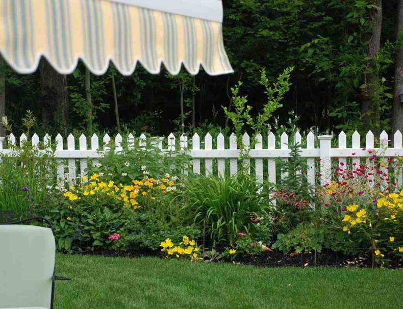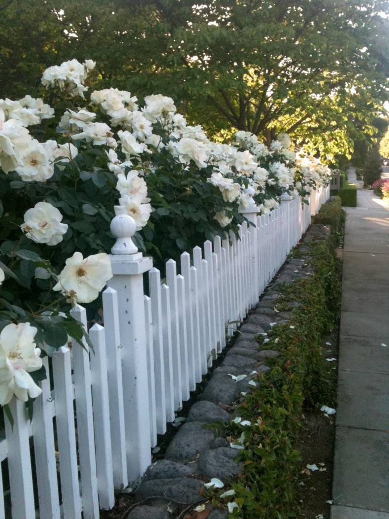 Сочно-зеленая лужайка, низкий белый штакетник – идиллический облик спального района одноэтажной Америки. Если по ограждению пустить плющ или ампельные розочки, то получится аристократический квартал в Англии или палисадник в колониальном стиле где-нибудь в Индии.
