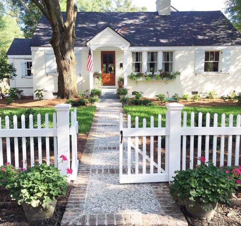 Проверены временем, всегда красивы комбинации белоснежного штакетника с: