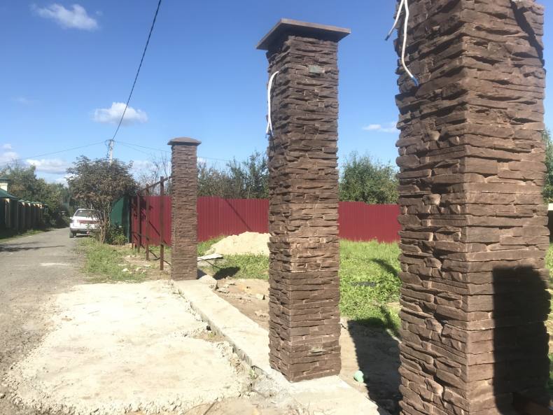 Отличным дополнением к забору станут декоративные столбы.