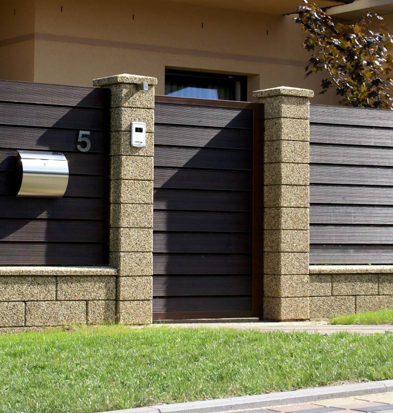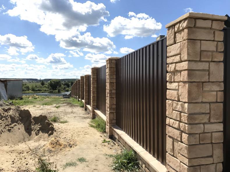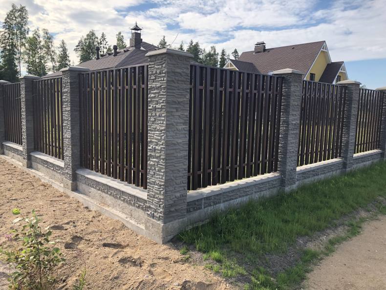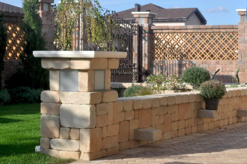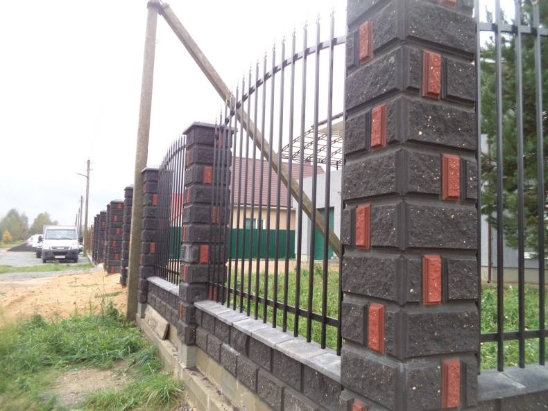 Можно комбинировать наборные блоки с другими материалами при строительстве забора. Основные преимущества наборных блоков: