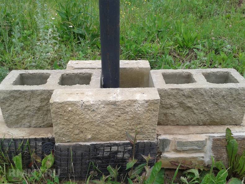 - Установить опоры на которые будут надеваться столбовые блоки.