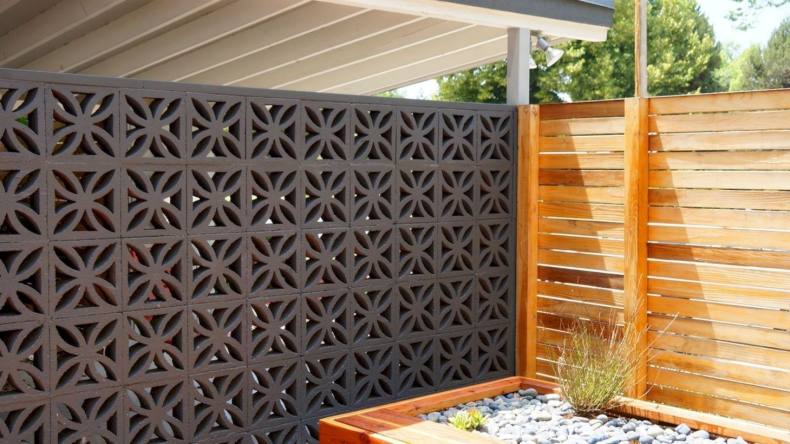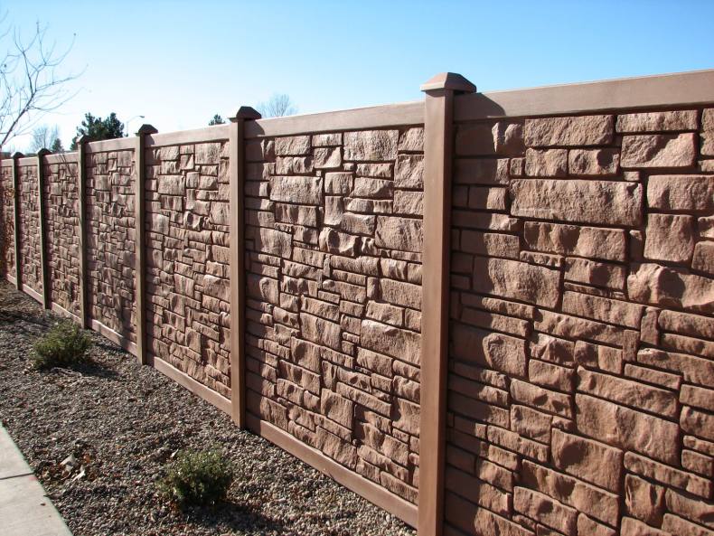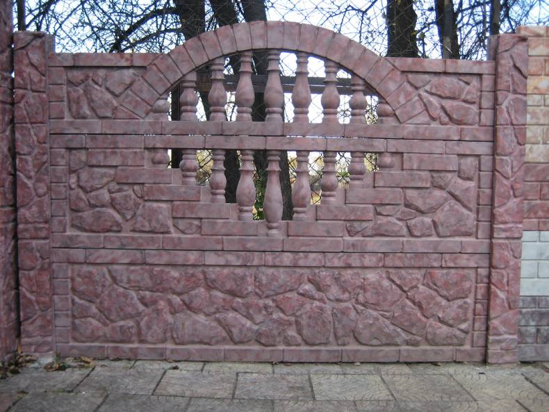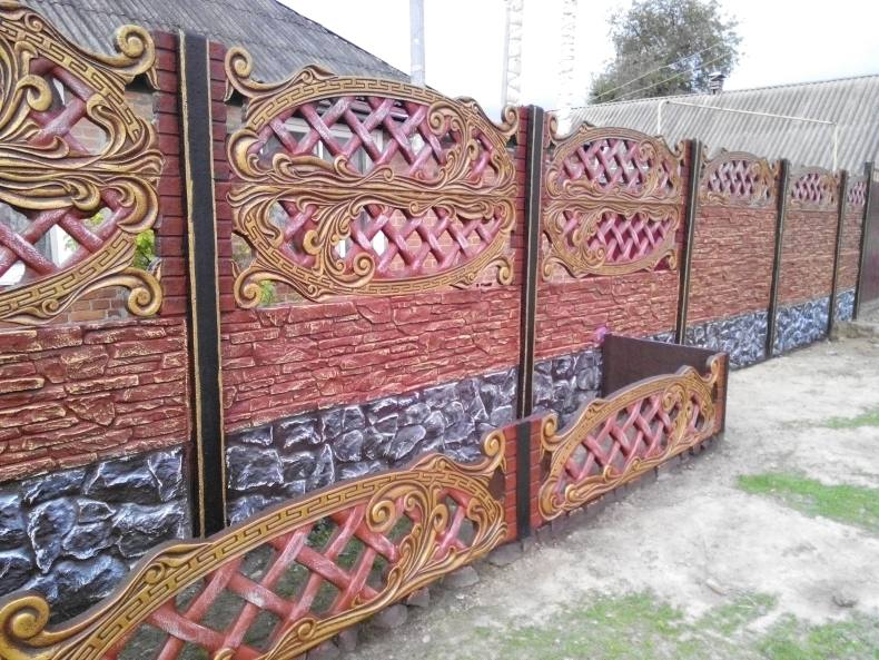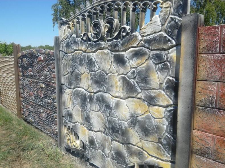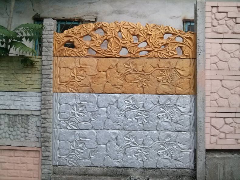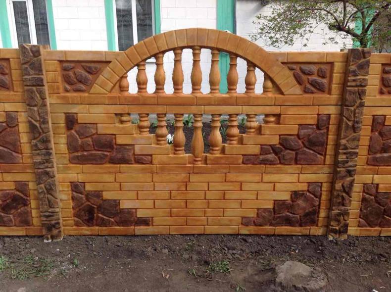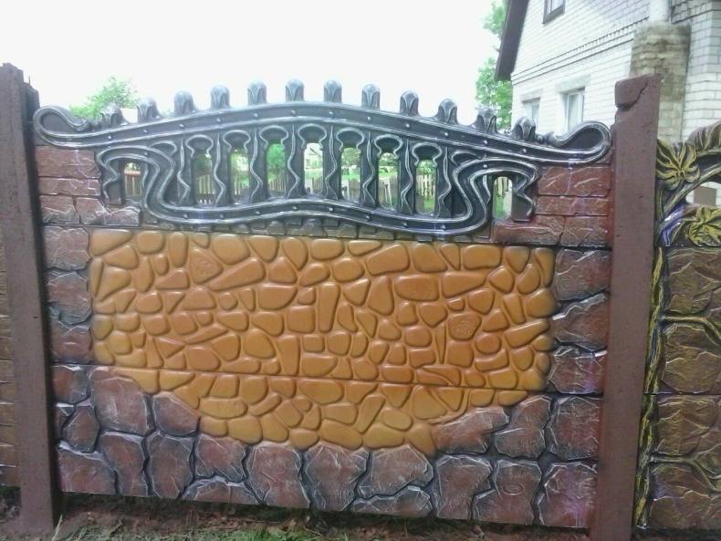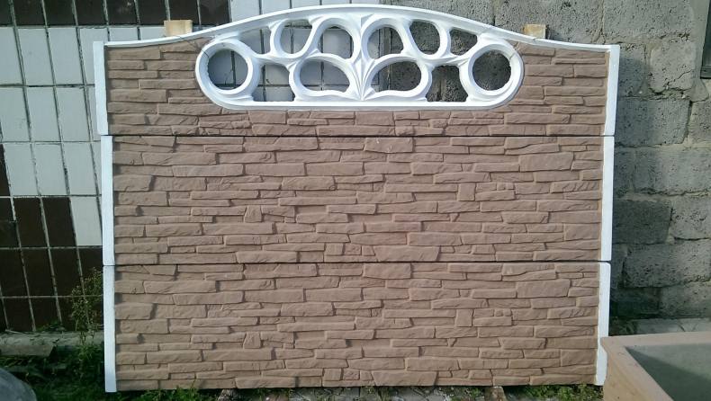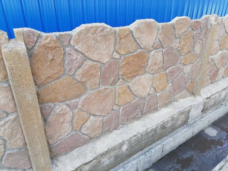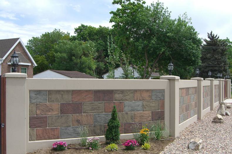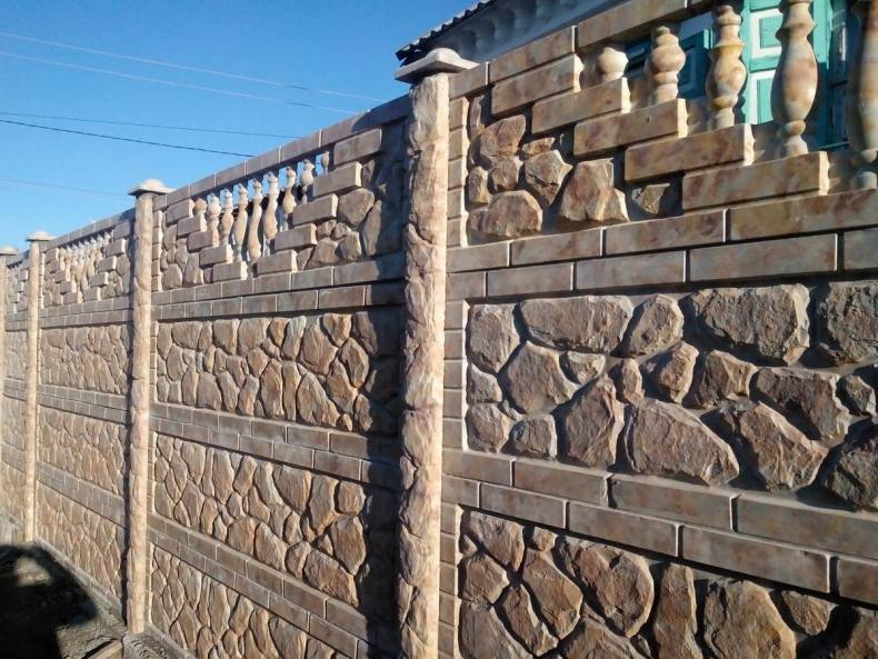 - Наборные ограждения. Это сооружение из бетонных секций с декоративными вставками в верхней части. Текстура бетона может имитировать камень, дерево или другие природные ресурсы.