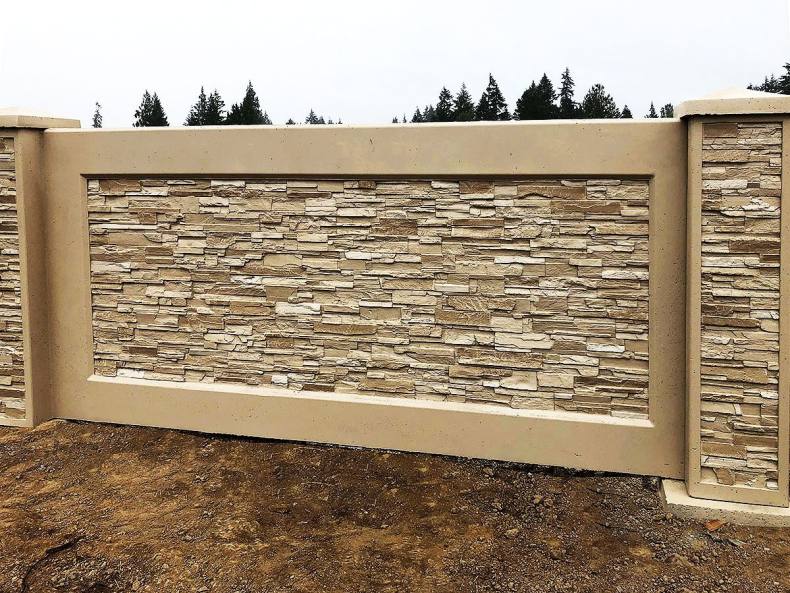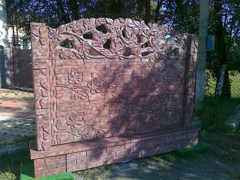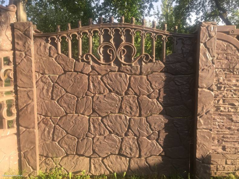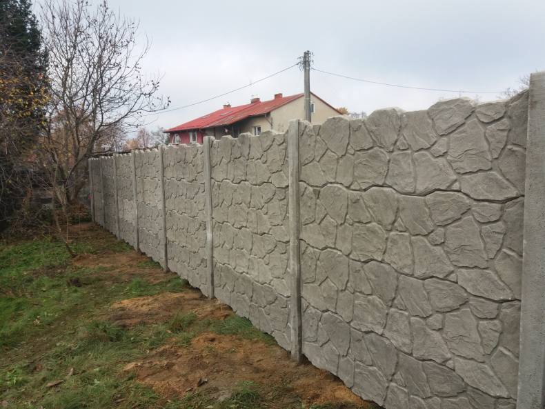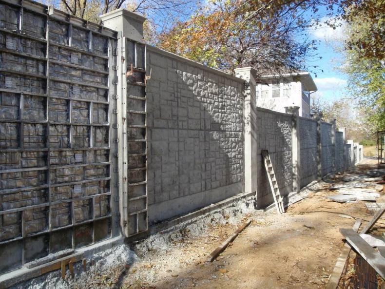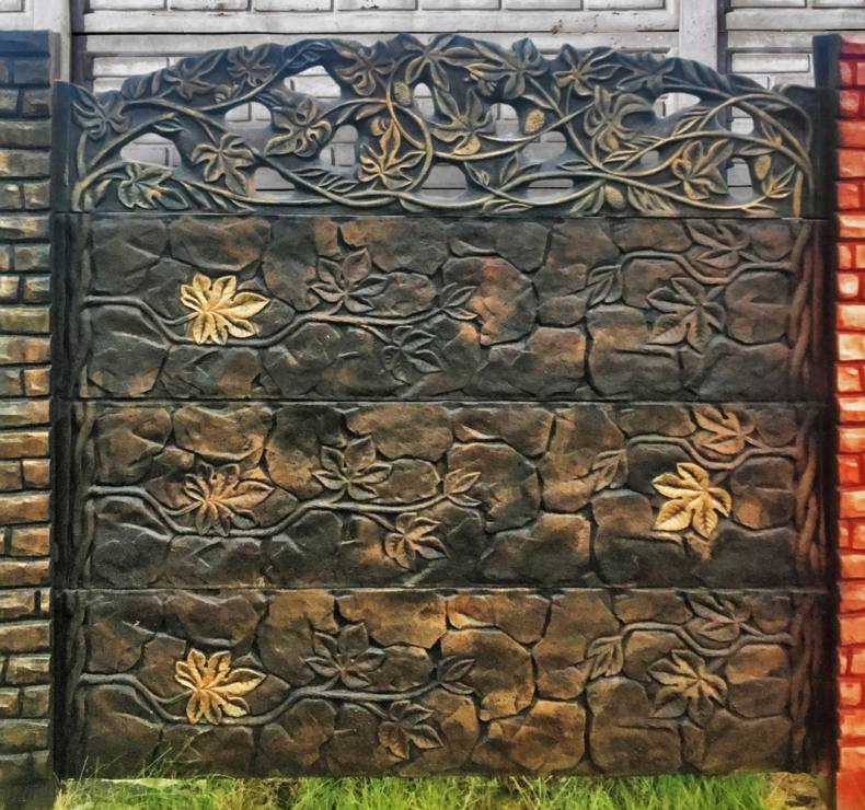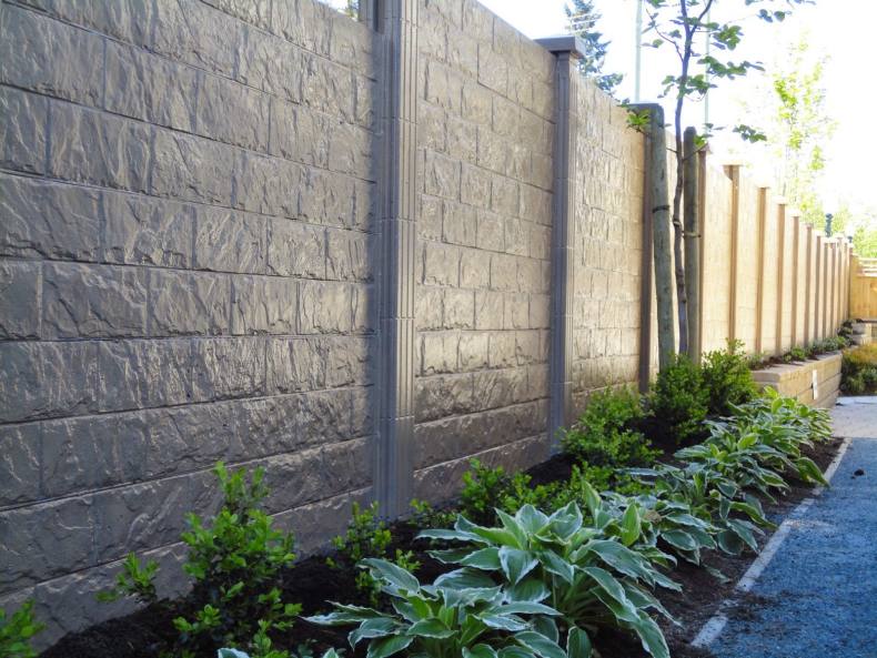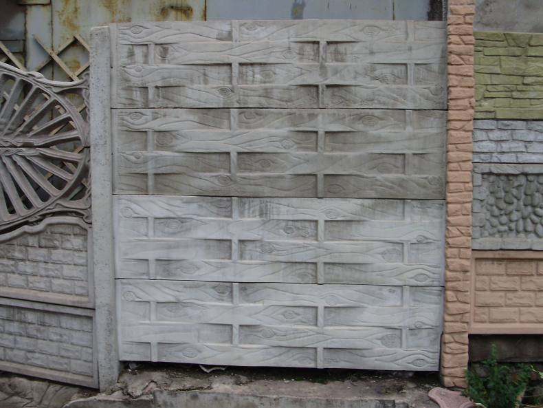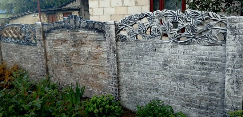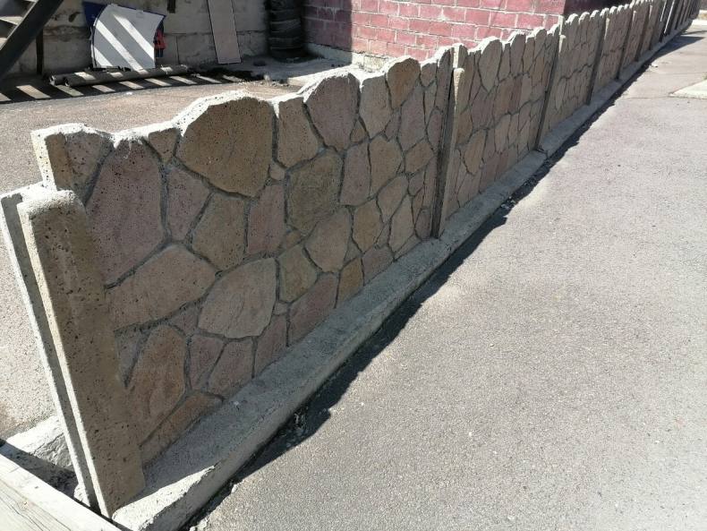 Помимо своей основной функции, забор из бетона может стать превосходным полем для творчества – текстура бетона может имитировать материалы, такие как натуральный кирпич, камень или дерево. Ограждение состоит из сегментов, которые фиксируются на опорных столбах.