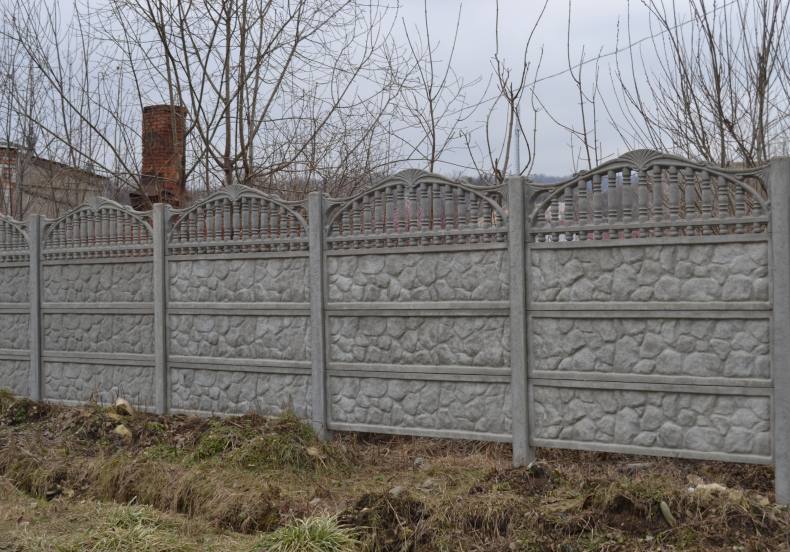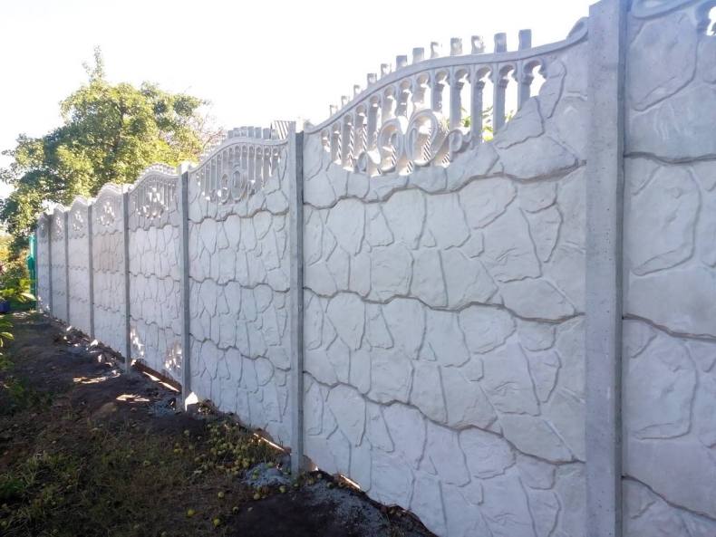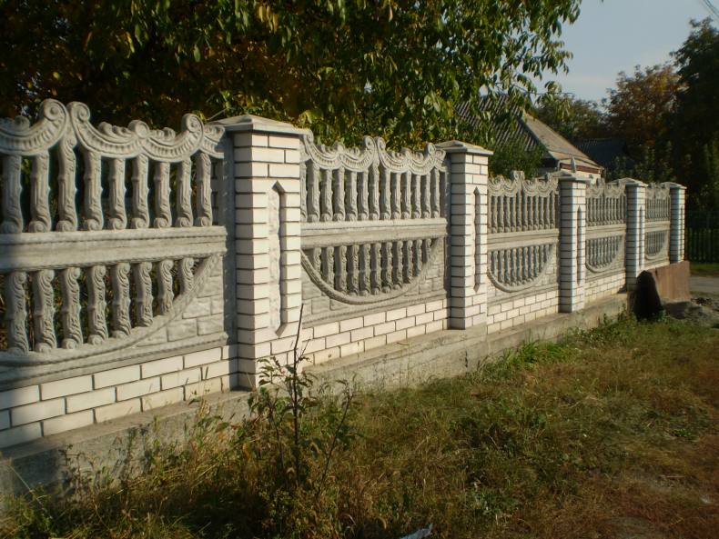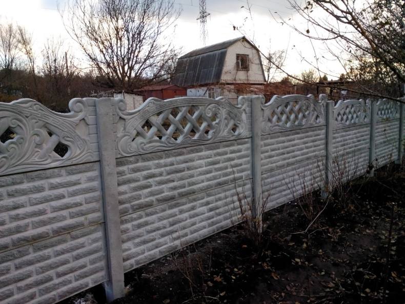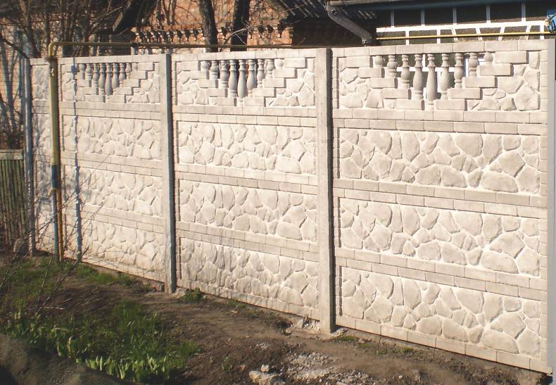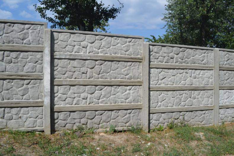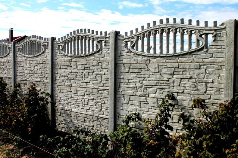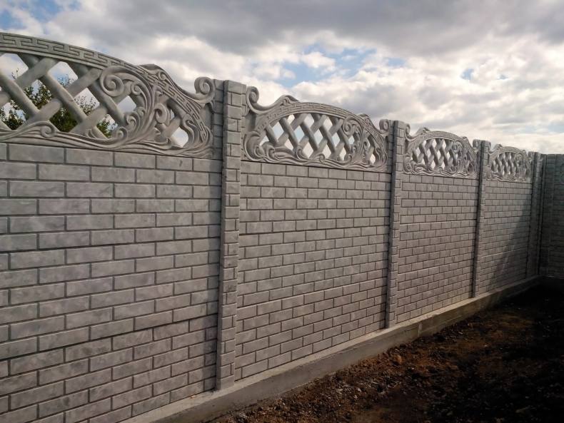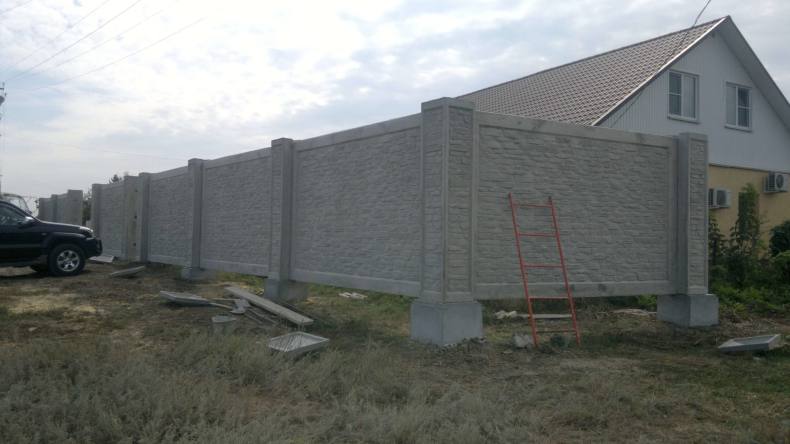 Преимущество бетонного ограждения заключается в надёжности, крепости и устойчивости. Забор является превосходной защитой от ветра и проникновения посторонних.