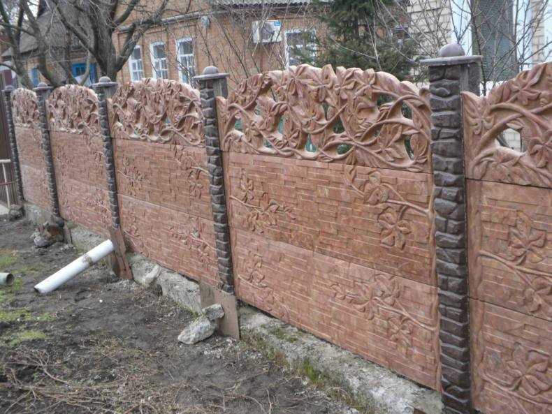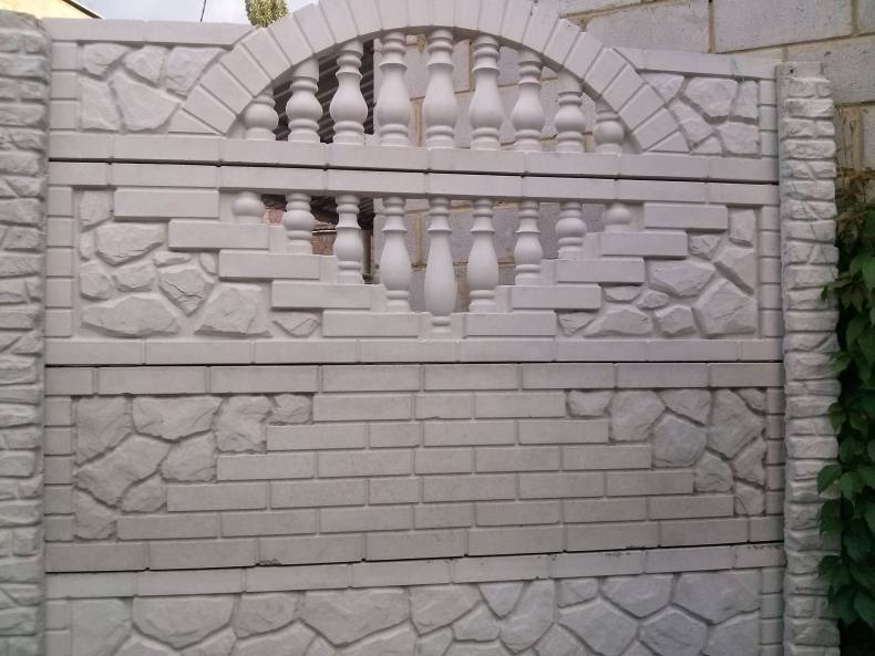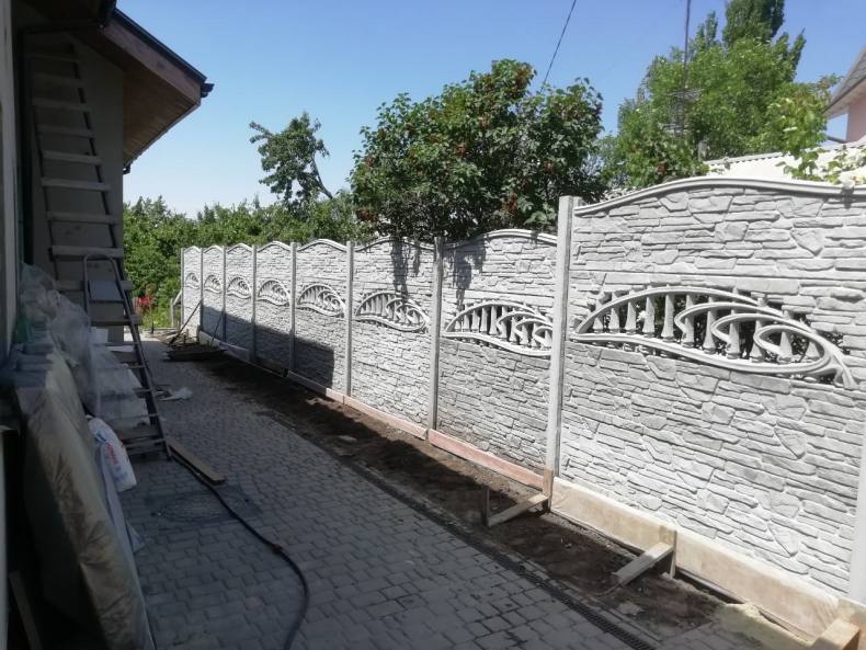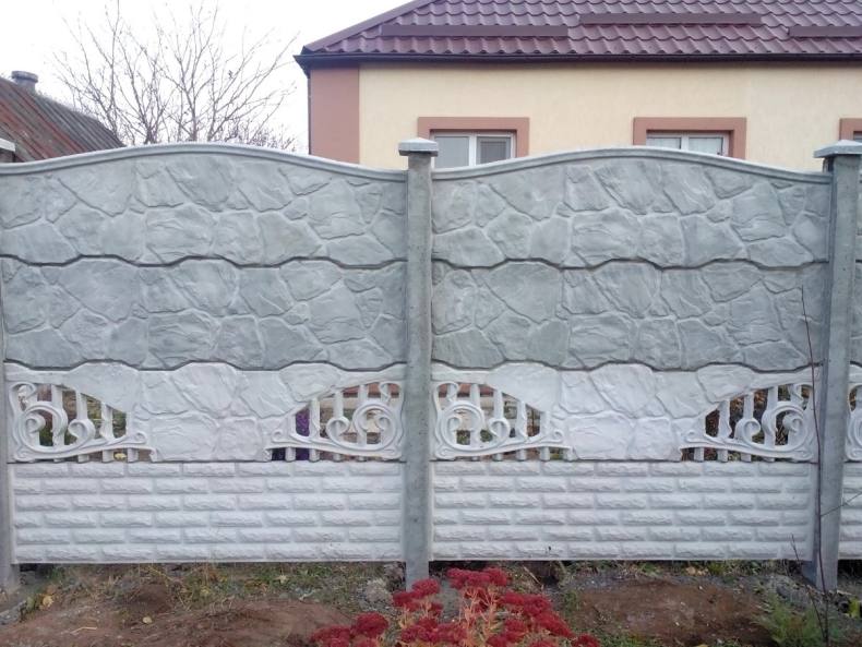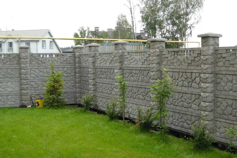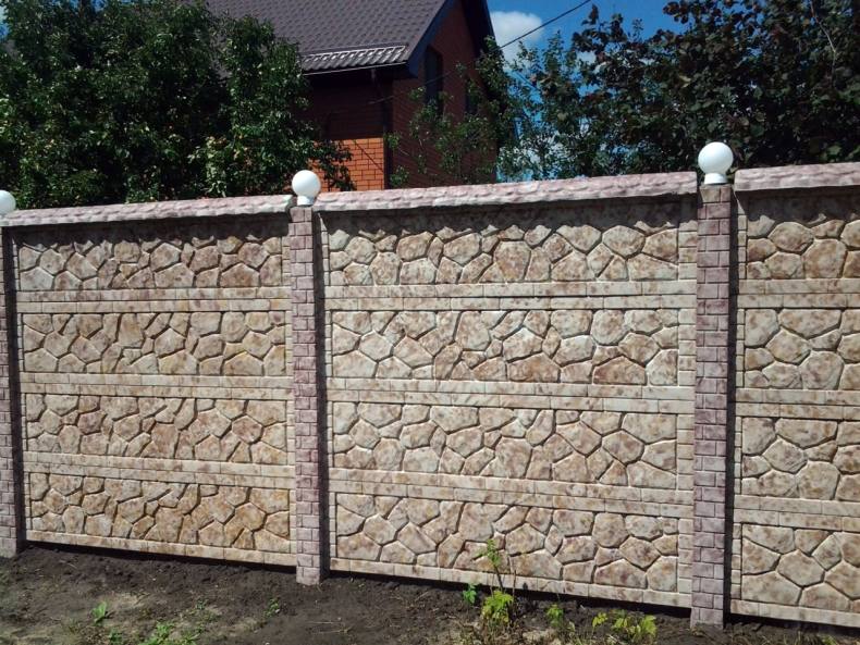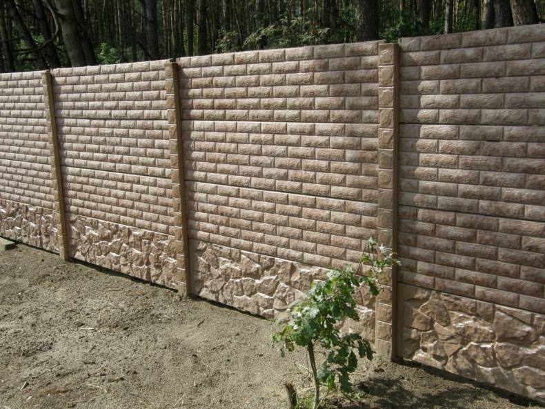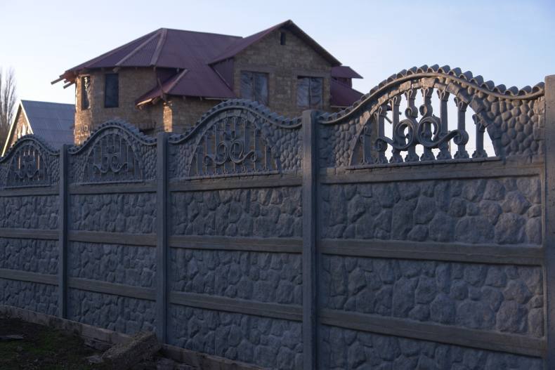 Преимущество бетонного ограждения заключается в надёжности, крепости и устойчивости. Забор является превосходной защитой от ветра и проникновения посторонних.