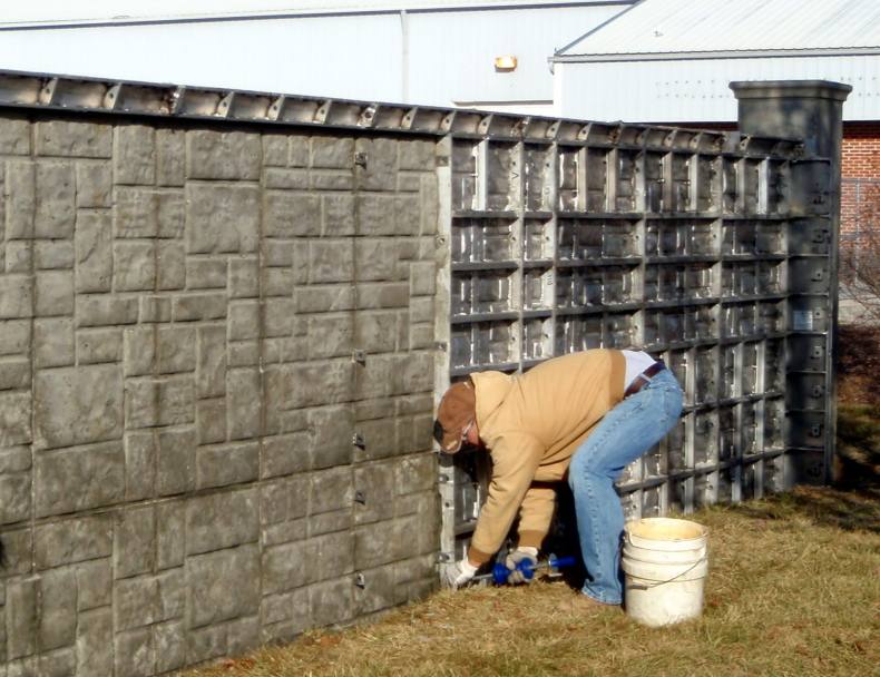 Опоры устанавливаются во время закладки основания и имеют выемки по бокам для крепления секций одну в другую.