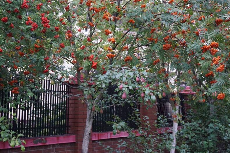 Рябина обыкновенная – высокорослое листопадное дерево, за которое скажут спасибо птицы. Для тех, кому нравятся плоды, можно порекомендовать рябину крупноплодную. Дожидаться от привитых растений плодов придется от 2 до 4 лет, но уход за ними в целом несложный. Крона разрастается примерно на 5 м в ширину и достигает 12 м в высоту. Если хочется необычного декоративного растения, то стоит обратить внимание на рябину Кёне с белыми ягодами.