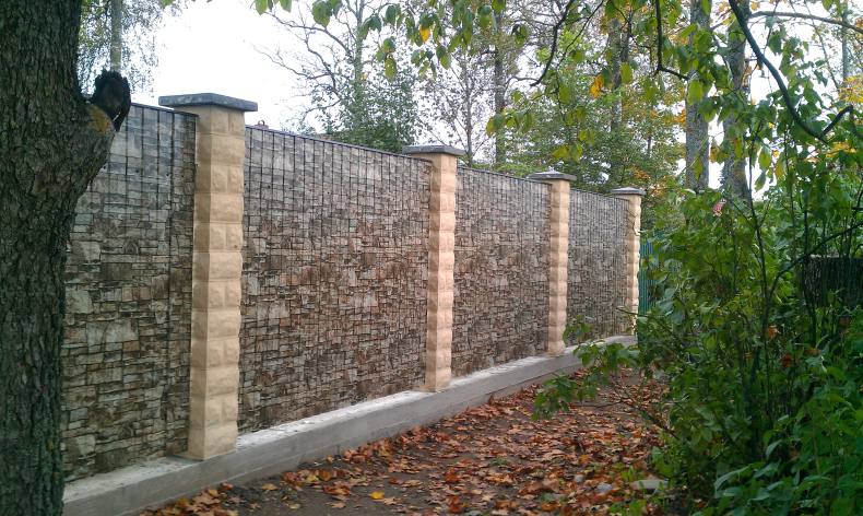 Можно использовать банально обычные древесные спилы. Их просто крепят к каркасу забора. Кругляшки отлично разнообразят простое основание.