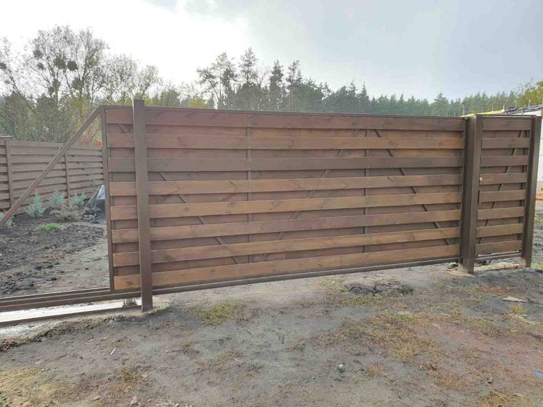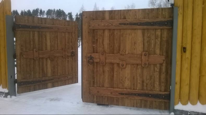 В большинстве случаев из дерева изготавливают распашные либо откатные ворота. Подъёмно-поворотные редко конструируют из-за сложного механизма сборки.