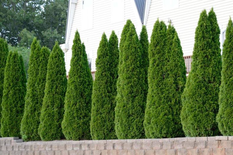 В качестве растений лучше использовать кустарники. Они быстро растут, хорошо реагируют на обрезку, имеют плотную листву и морозостойкие.