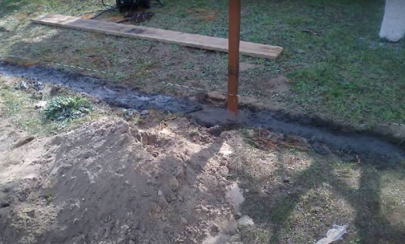 Деревянные опорные столбы обрабатывают антисептиком. Расстояние между опорами зависит от длины подготовленной лозы.
