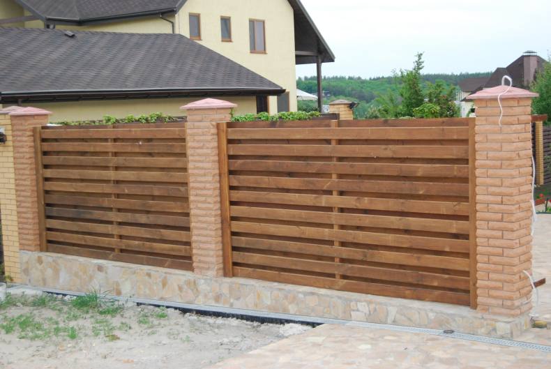 - Ограждение из горизонтально расположенных досок;