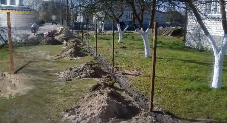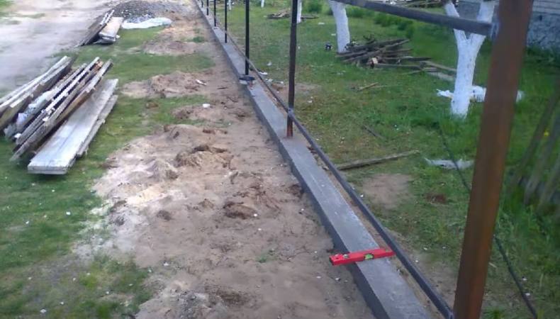 - Самый дешевый способ — натянуть сетку на столбы. Используют также гофрированную и сварную сетки.