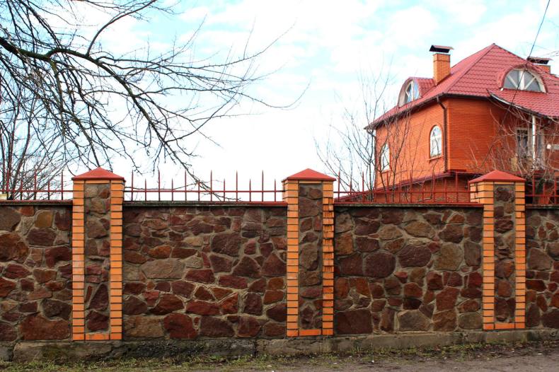Из всех видов заборов наиболее прочная конструкция состоит из камня или кирпича. Он может прослужить более 50 лет. Каменный забор выглядит достойно, очень прочный и не требует особого ухода.