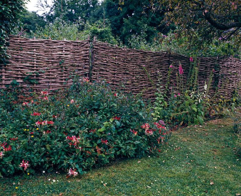 Такую изгородь можно установить внутри участка для разделения пространства палисадника и огорода. Достоинство забора — между ветками хорошо циркулирует воздух. Однако такое ограждение недолговечно и каждые пять лет его необходимо обновлять.