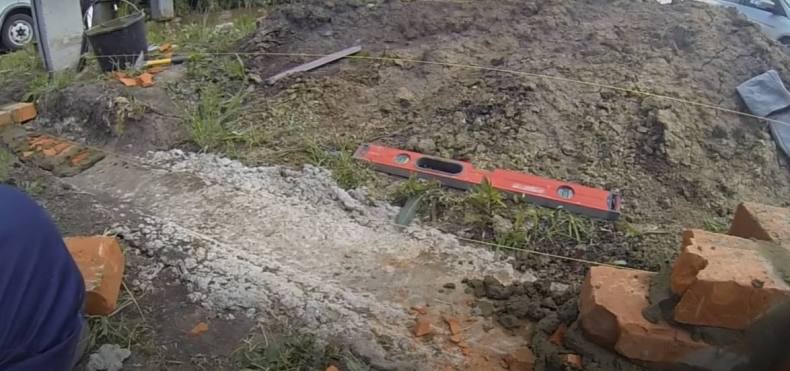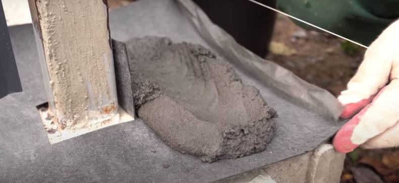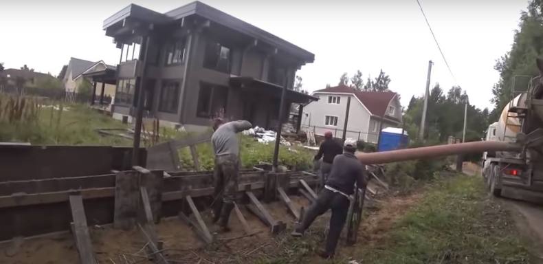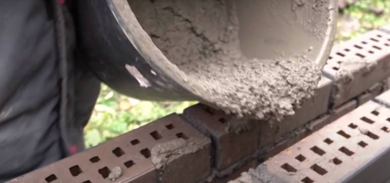 - Заливка бетона. Забор из кирпича относится к виду легких построек, поэтому возможно использование марки М200.