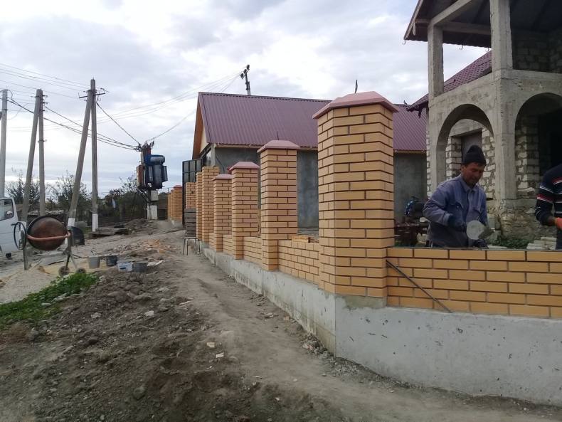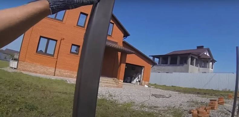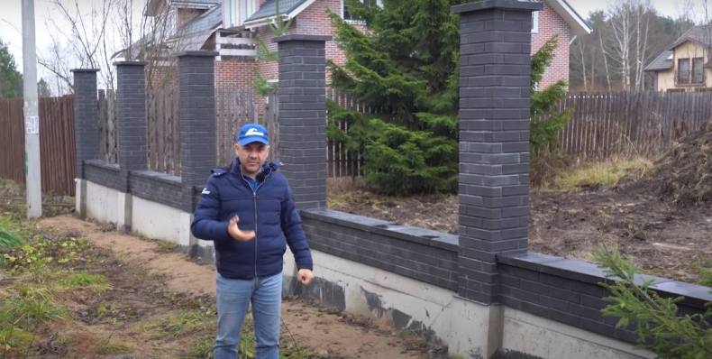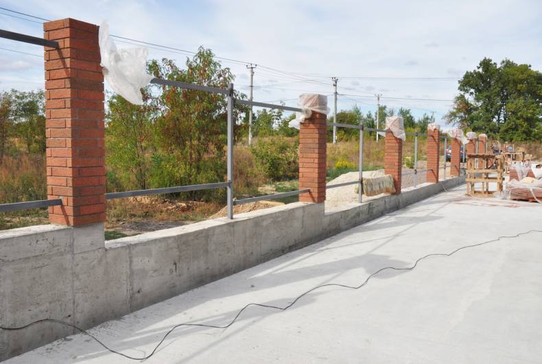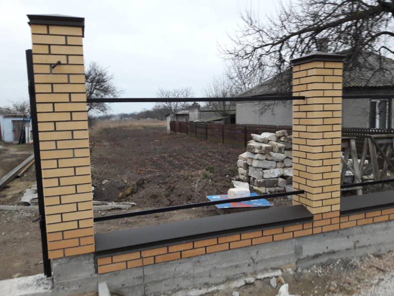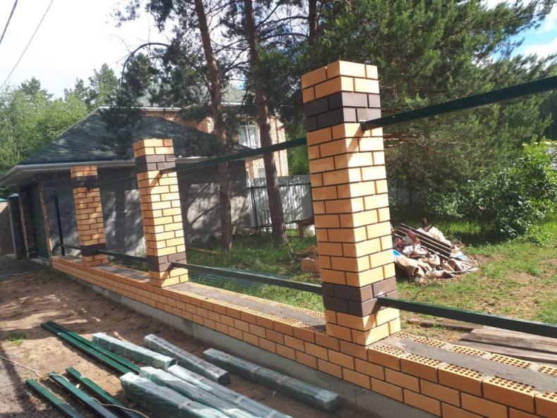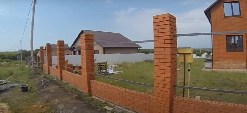 - Ограждение достаточно прочное, так как смонтировано на кирпичных опорных столбах.