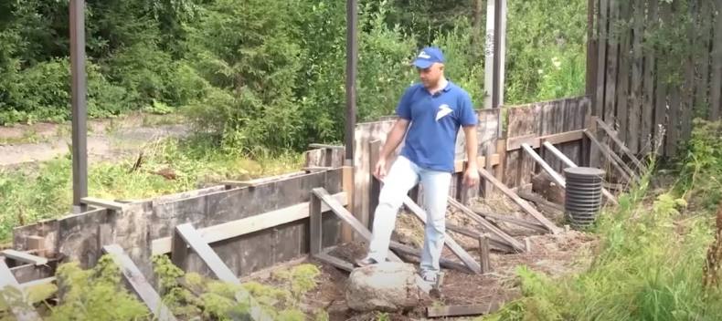 - Земляные работы. Проводятся для обустройства монолитного ленточного фундамента. Глубина траншеи зависит от расчетной нагрузки и особенностей грунта. Для пролетов достаточно углубление в полметра, а для опорных столбов обязательно ниже уровня промерзания грунта.