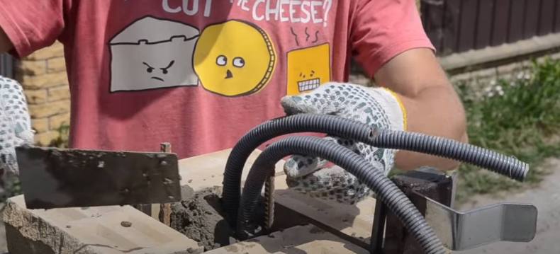 Если ограда комбинированная либо столб располагается у ворот, то необходимо обустроить закладные элементы, на которые будут монтироваться крепление для калитки и поперечины пролетов.