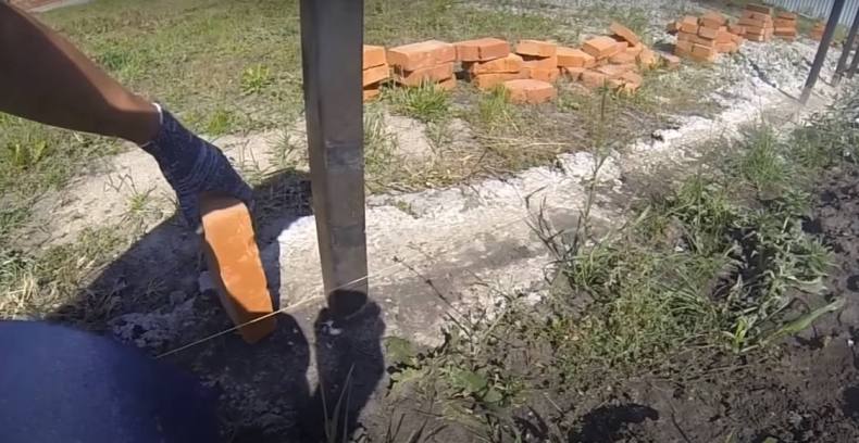 - Планирование участка. По длине будущего ограждения делают разметки с учетом размеров столбов и пролетов (с учетом кладки – полкирпича либо один кирпич). Также следует прибавить дополнительное расстояние на толщину вертикальных швов.