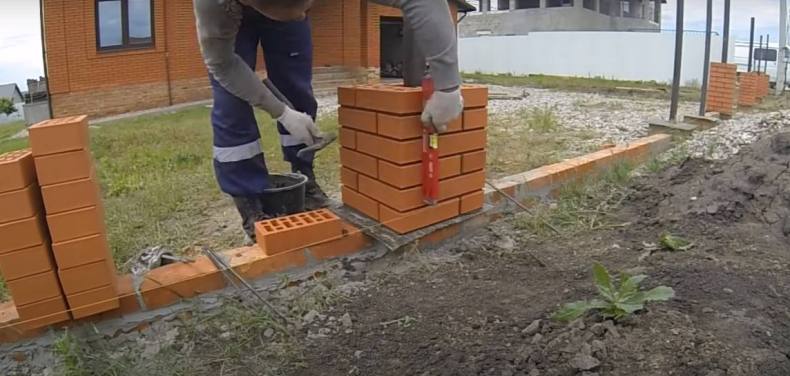 При возведении забора из кирпича используются 2 технологии, отличающиеся видами кладки – строительство столбов и раскладка пролетов.