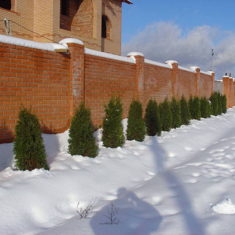 - Защита. Сплошной забор является надежным защитником от воздействия ветра и проникновения дорожной пыли. Толстая кладка кирпича также обладает отличными поглощающими шум свойствами, что особенно актуально, если дом находится в непосредственной близости от дороги.
