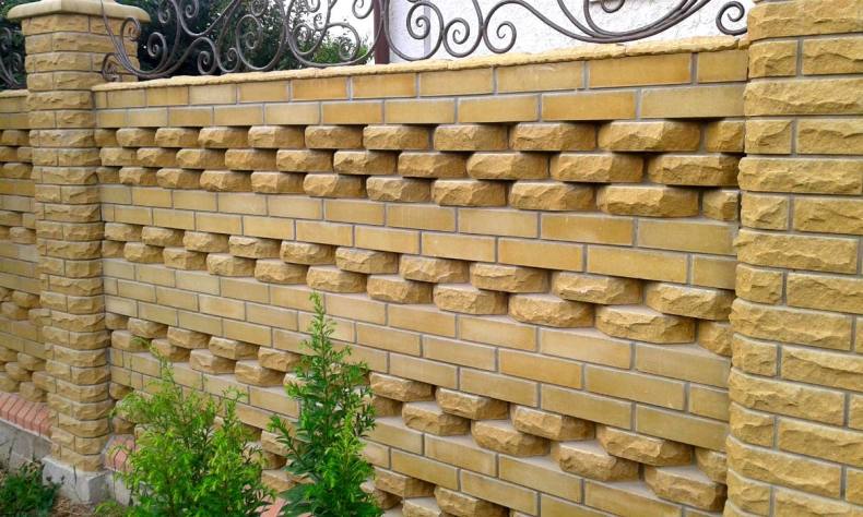 - Облицовочный. Также относится к недорогим штучным товарам, используется как в строительстве, так и в отделке. При обустройстве заборов этот вид наиболее популярен и востребован.
