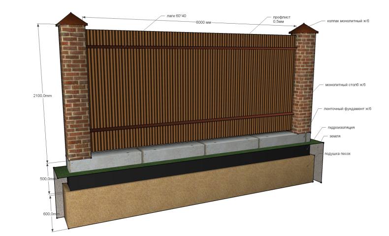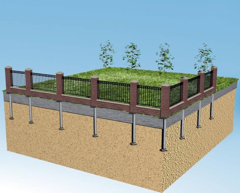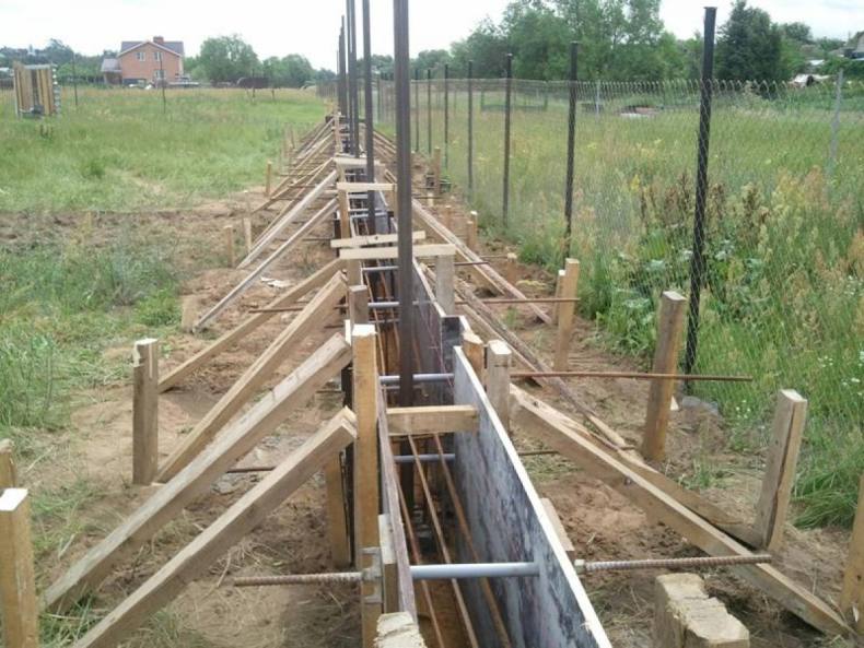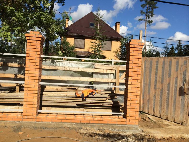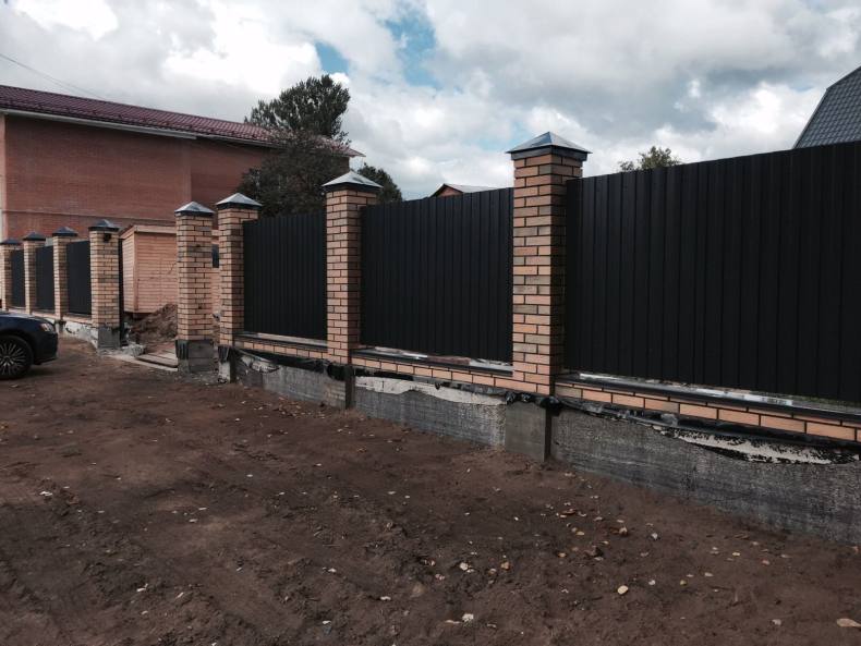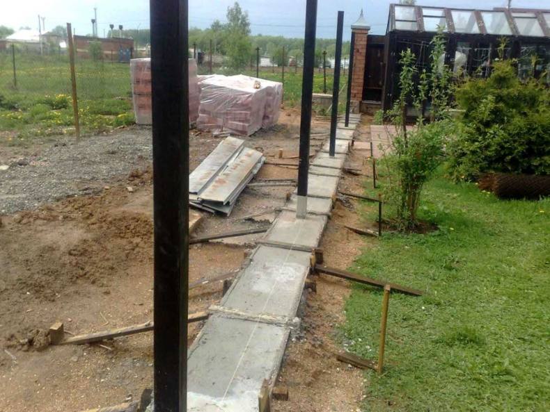 Фундамент для кирпичного забора: строительство опалубки, заливка, устройство, ленточный, столбчатый, винтовой, железобетонный