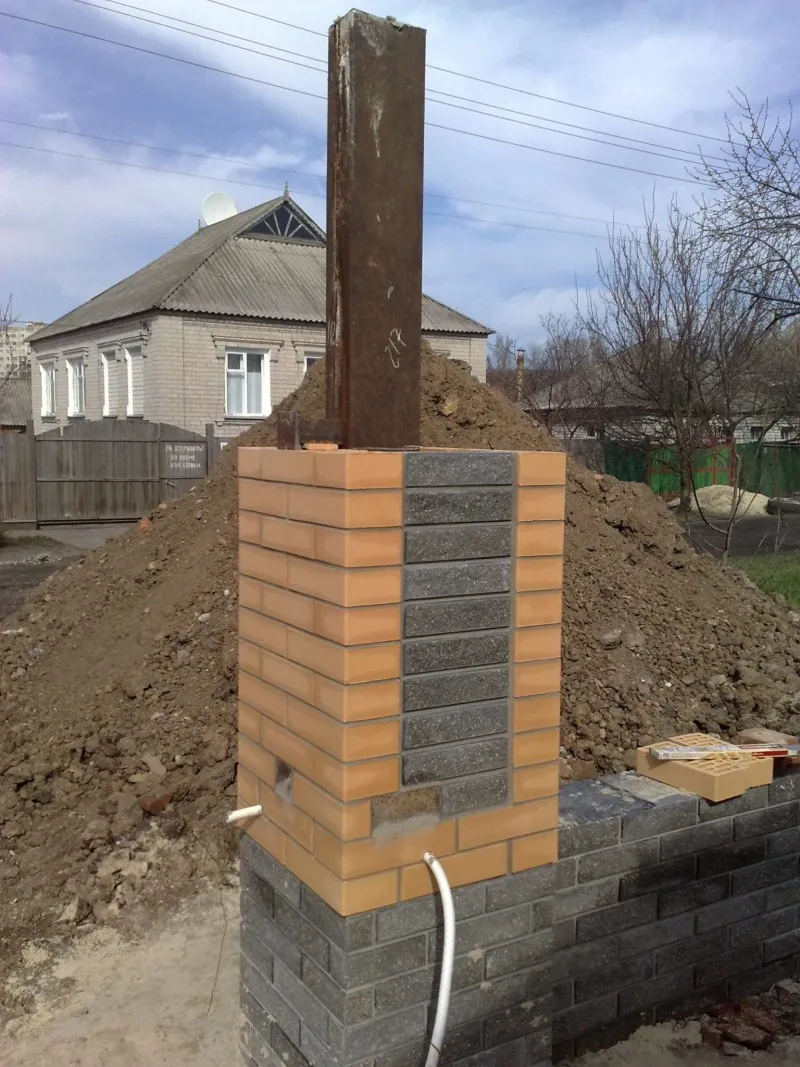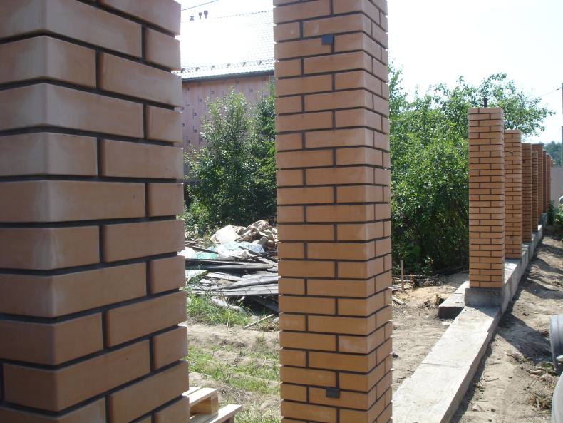 - Столбчатый применяют при возведении опорных столбов и декорировании пролетов легкими отделочными материалами. Для оснований под столбы используют старые стройматериалы, которые в процессе проведения кладки декорируют отделочным кирпичом или плиткой.