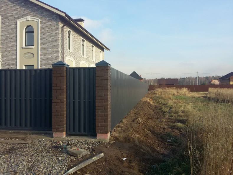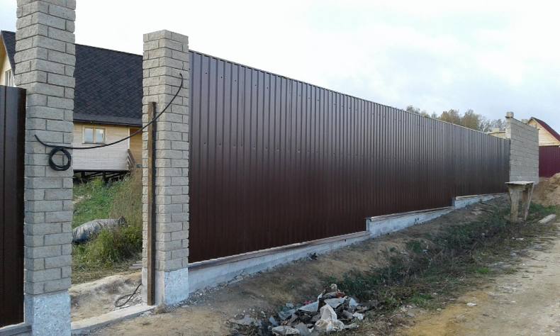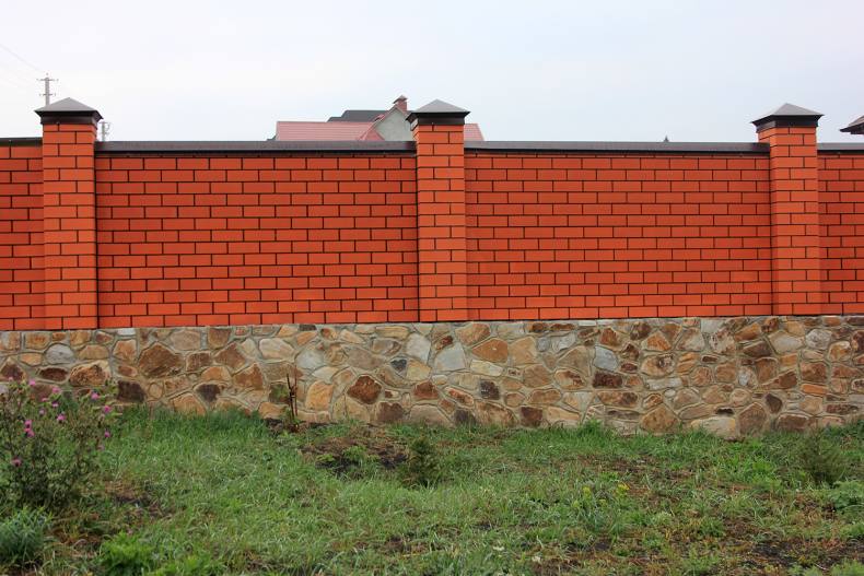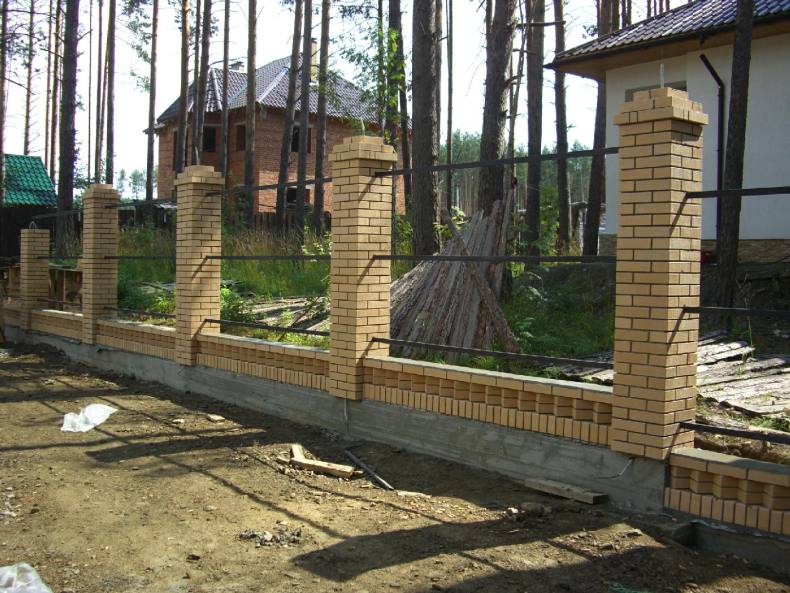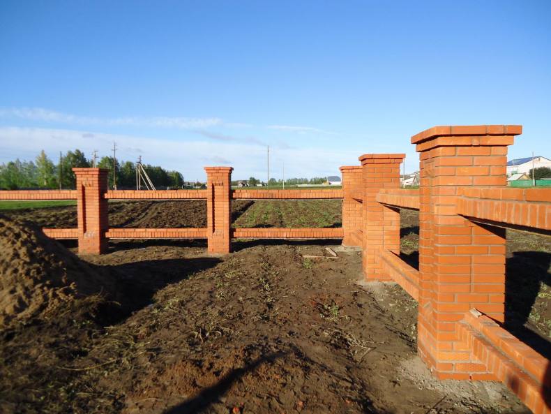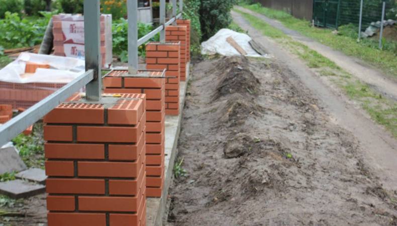 При строительстве обязательно учитывается высота забора из кирпича. Чем выше ограждение, тем больший вес оно имеет, следовательно, возрастает нагрузка на основание.