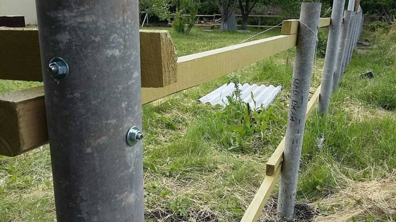 - Чтобы у вас получились прочные опоры, которые будут стоять устойчиво и не покосились при смене сезонов, их желательно соединять перемычкой сверху и снизу. Сечение такой трубы такое же, что и самого столба.