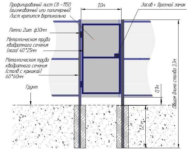 - Выбираете столбы из профильной трубы. Расчет длины должен опираться на высоту собственно калитки и глубину заглубления стоек в грунт.