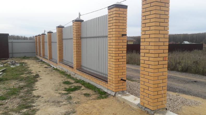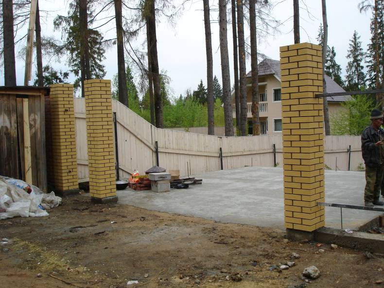 Материал для столбов опоры может использоваться разный. Это может быть кирпич, крепкие породы дерева или металл.