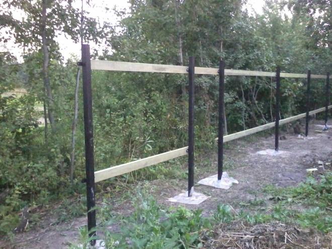 - Чисто металлические столбы опоры делают из профилированных труб.