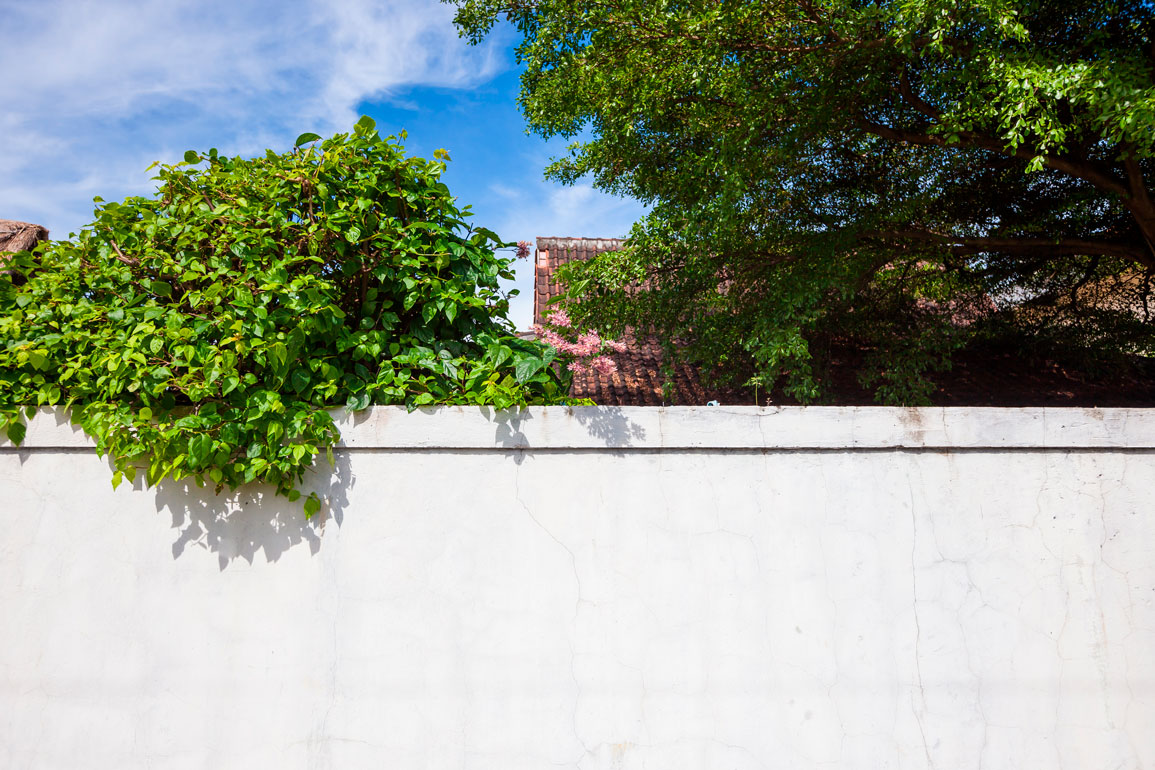 - Просто посадки рядом с ограждением. В этом случае подбирайте разновидности, которые хорошо переносят тень или полутень и выживут без обилия солнечных лучей. Это могут быть цветы, кустарники или невысокие деревья.