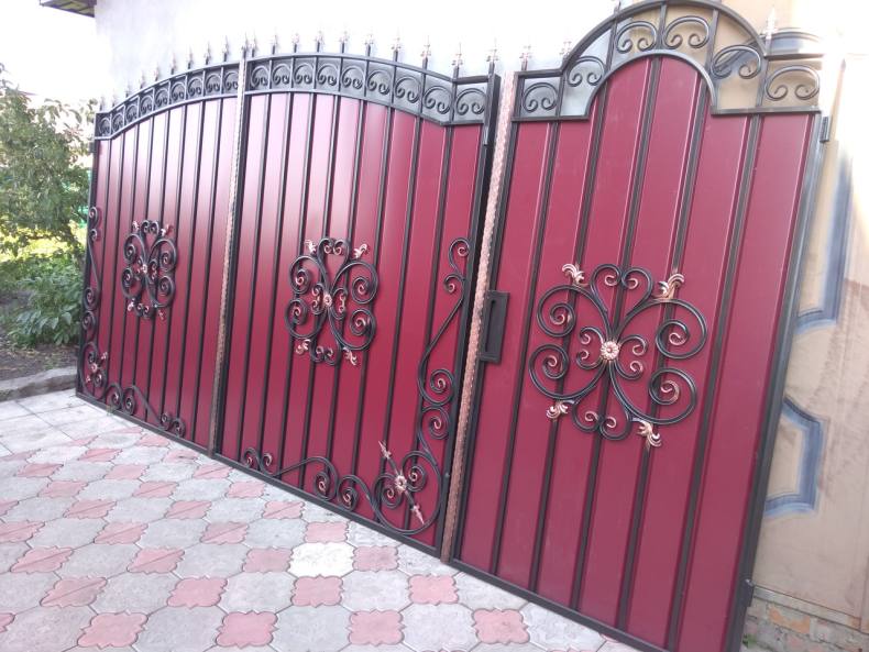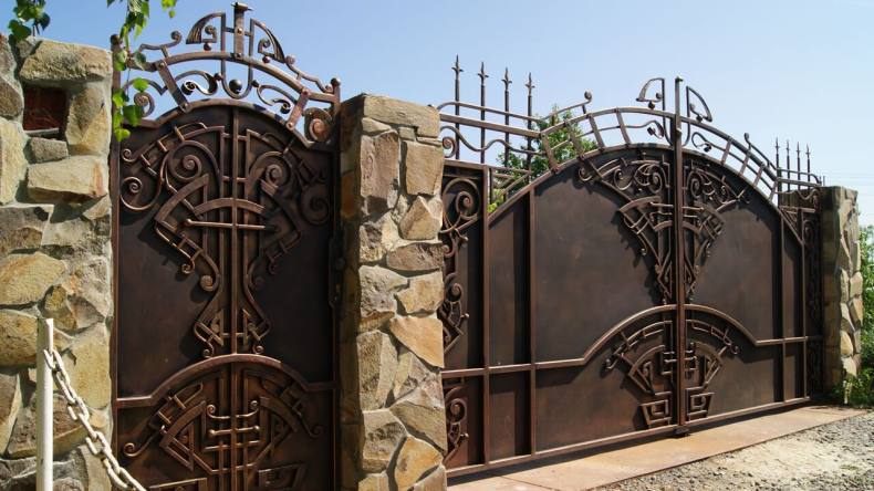 - Кованые калитки, особый оригинальный и неповторимый индивидуальный стиль, устойчивый к переменам погоды. Один из недостатков установка одному не под силу, нужен мастер по монтажу специальных крепежей и оборудования.