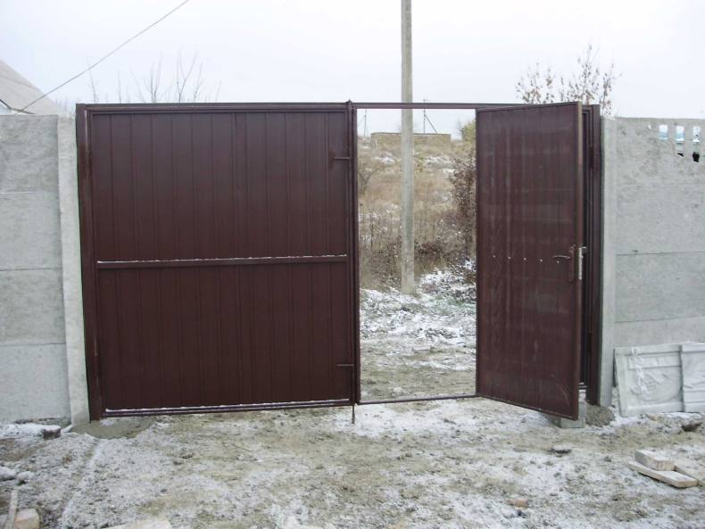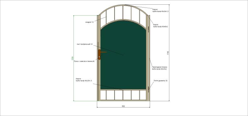 - Желательно придерживаться 100-сантиметровой ширины входной конструкции. Метра вполне хватит, чтобы через проем можно было пронести крупногабаритные предметы. Слишком крупная калитка провиснет под собственным весом, из-за чего навесы и петли быстро придут в негодность.