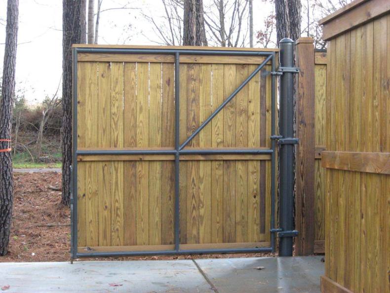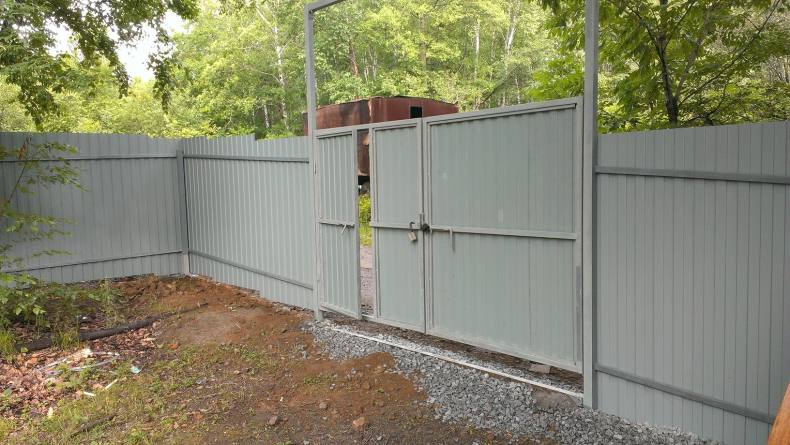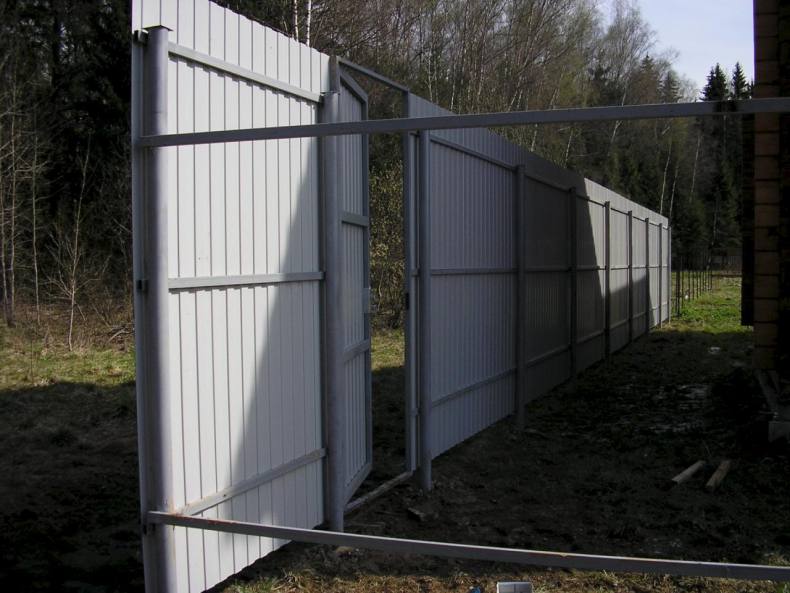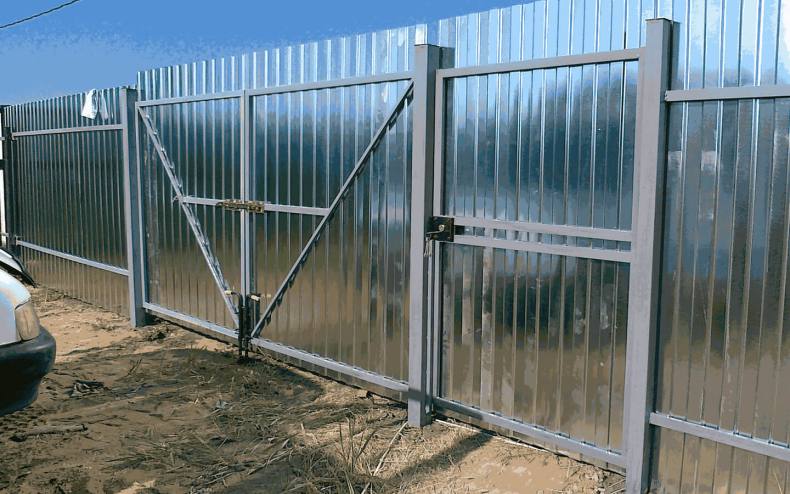 Рекомендованная высота конструкции составляет 2,3 метра; калитка подбирается под размеры самого ограждения.