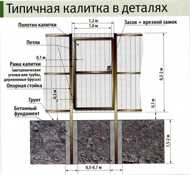 - Определение вида опор и типа калитки: это может быть отдельная или совмещенная с воротами.
