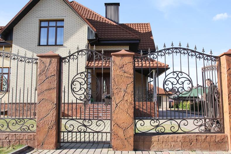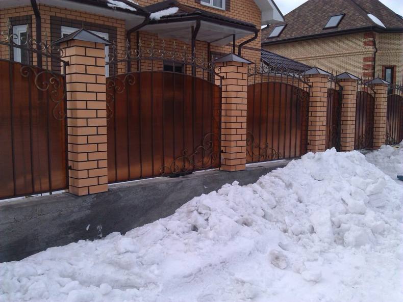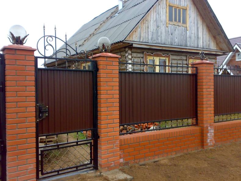 Плюсы и минусы ограждений из кирпича и ковки можно сравнить полностью коваными заборами, имеющими столбы из металла либо с ограждениями из профнастила, имеющими в качестве опоры разнообразные материалы.