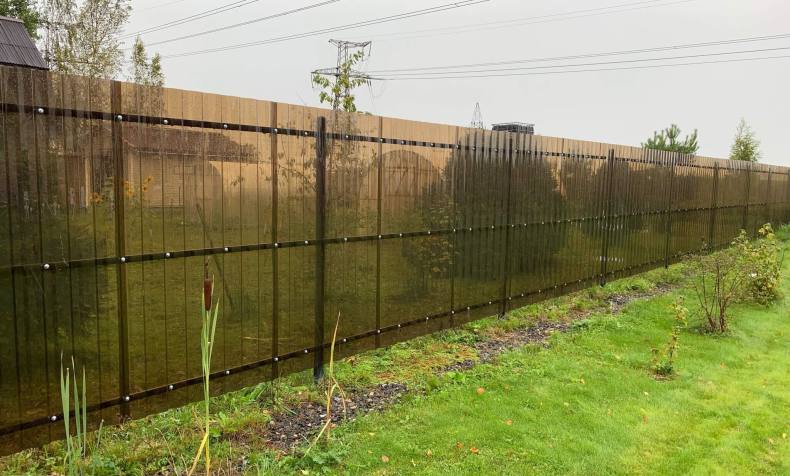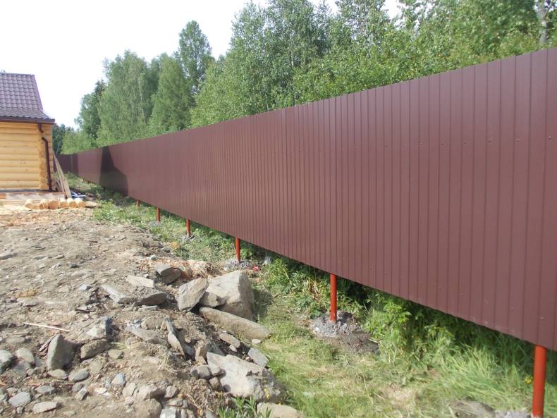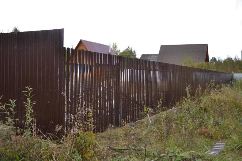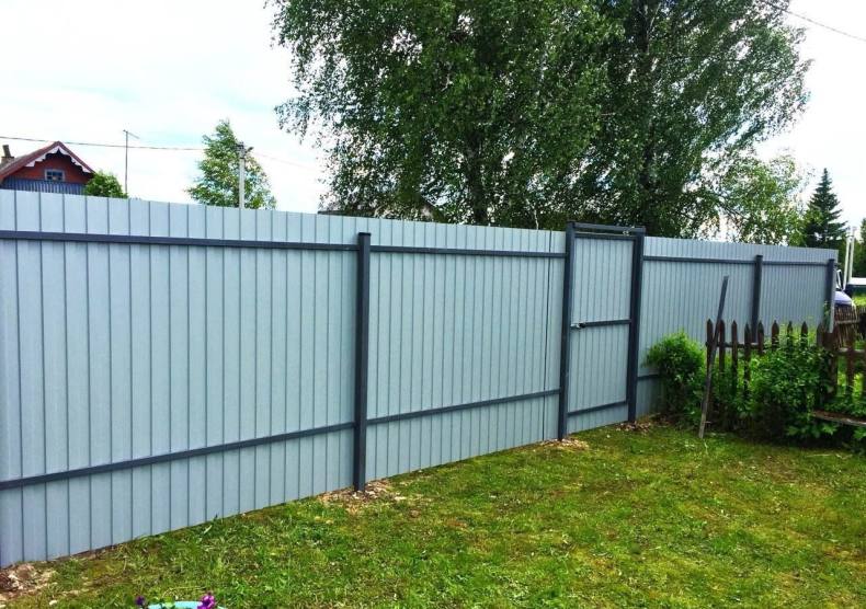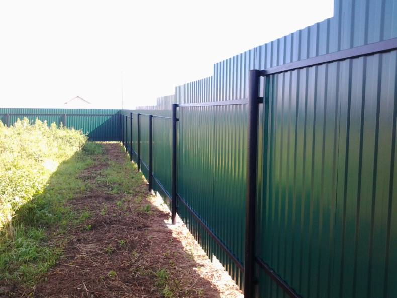 Рифленая поверхность и качественная обработка профнастила делают его надежным и долговечным материалом для ограждений.