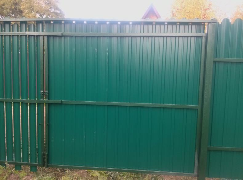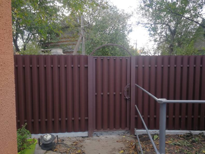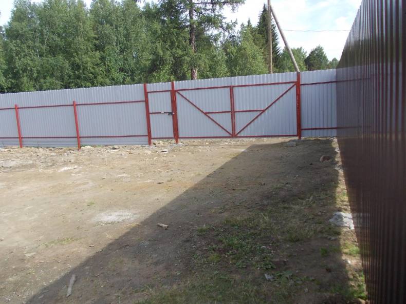 Заборы из металлических листов хорошо сопротивляются ветровым нагрузкам и образуют невидимую для посторонних площадь закрытого двора.