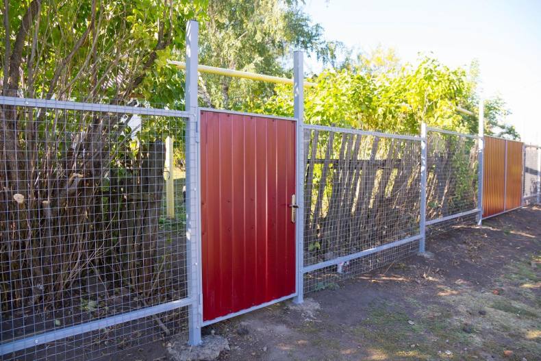 - С помощью сетки рабицы можно открыть внешний обзор окружающей местности, сделав это фрагментарно, или чередуя участки периметра ограды из разных материалов.