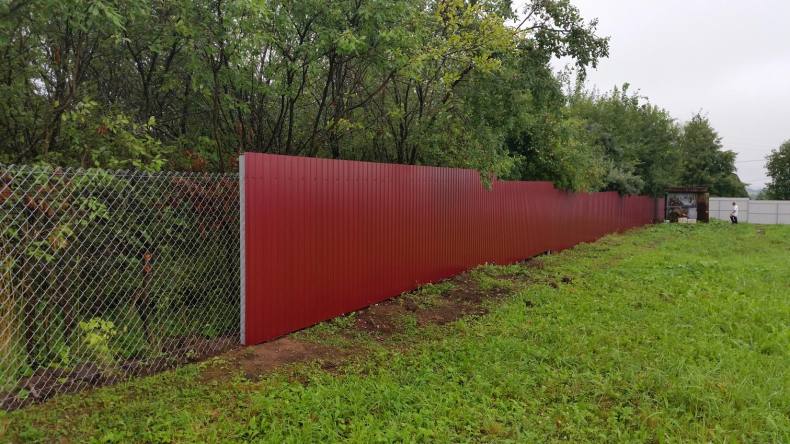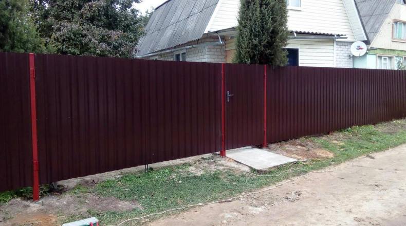 Комбинированный забор из профнастила: пошаговая инструкция по строительству своими руками забора с кирпичными столбами