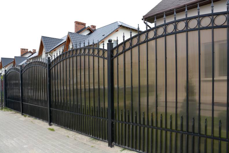 - Уход за кованным забором из поликарбоната является минимальным;