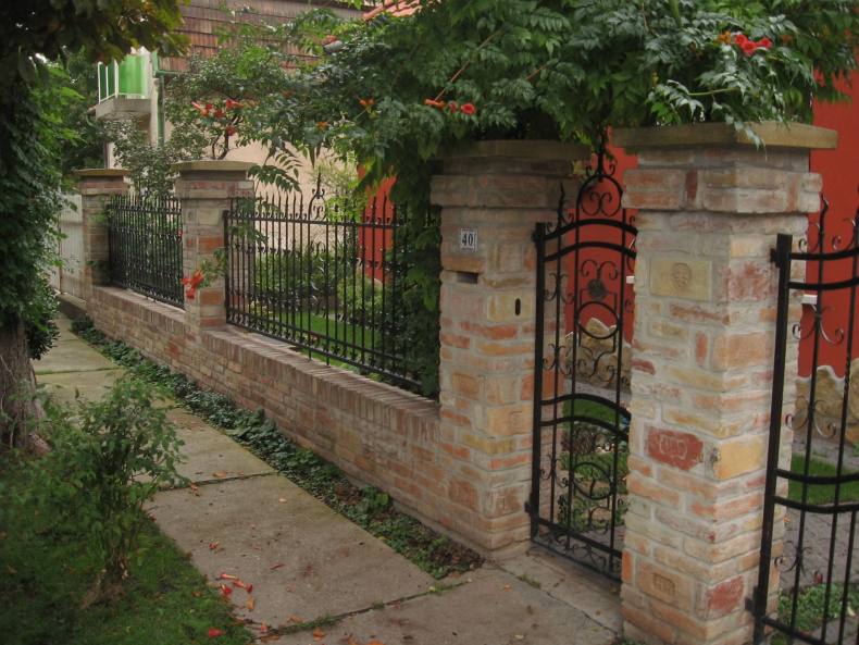 Симпатичное ограждение из кирпича способно прослужить несколько десятков лет без особых проблем, обеспечивая неплохую защиту от нежданных визитеров.