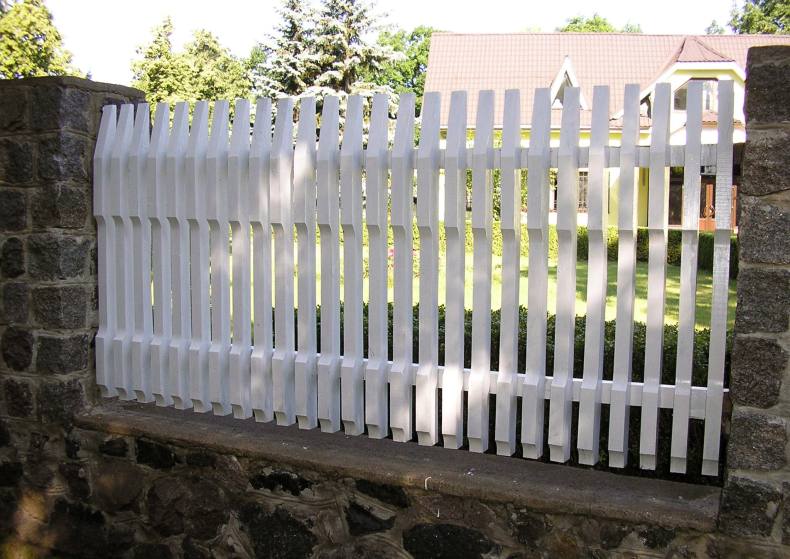 - Традиционным для загородного дома или дачи вариантом деревянного забора является штакетник, характеризующийся минимальной стоимостью изготовления.